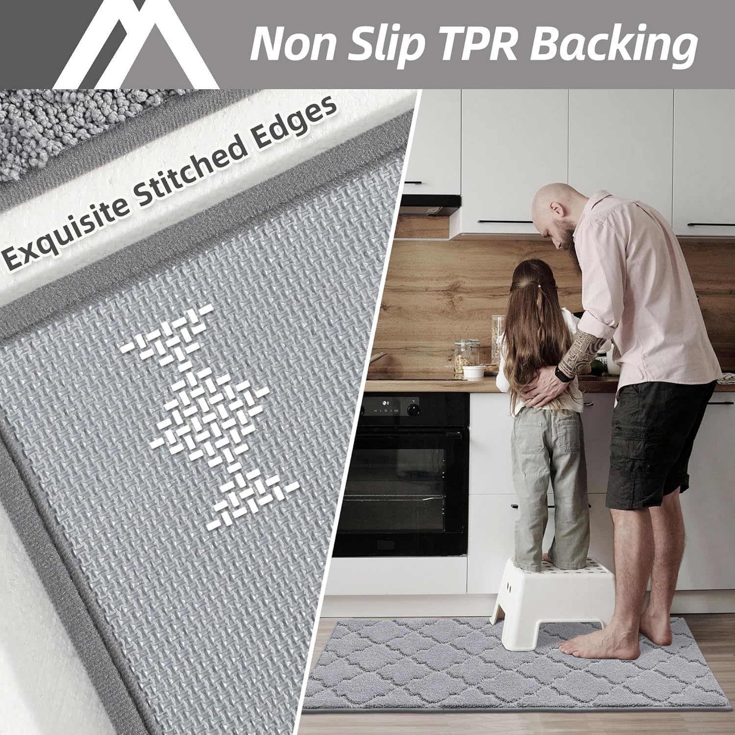 - Super Absorbent: The floor mat is made of polyester, which is durable and the surface is not easy to get dirty. It can perfectly absorb the water splashed by kitchen cooking and dining