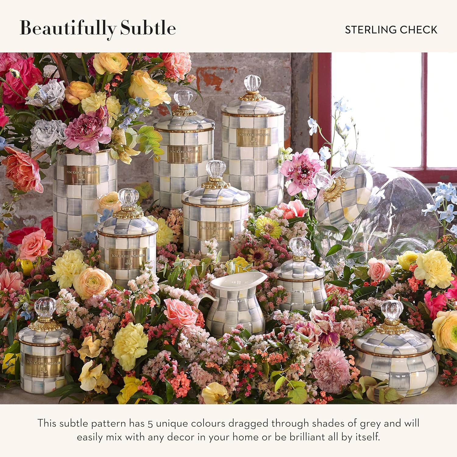 MACKENZIE-CHILDS Enamel Utensil Holder, Kitchen Utensil Holder for Countertop, Storage Caddy, Gray-and-White Sterling Check