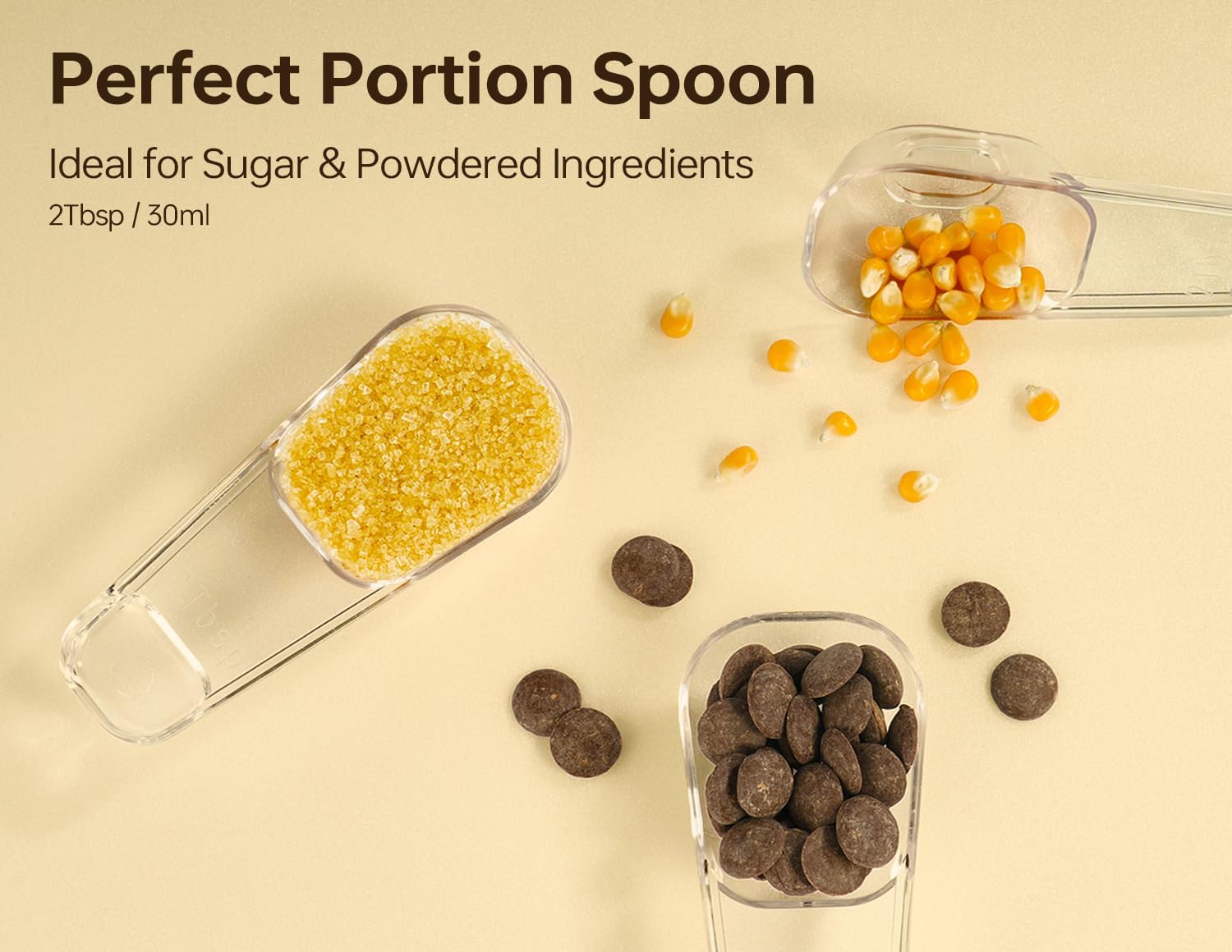 - 3 PIECES PANTRY STORAGE SET WITH SCOOPS: Set includes 3 x 5” LARGE-M (1.8qt) containers, 2 x 2 tbsp scoops, perfect for flour, sugar, oats, protein powder, and other scoop-required pantry staples. Designed for efficient kitchen organization, these airtight containers keep dry ingredients fresh and accessible while also doubling as organizers for fridge, crafts, or household essentials.