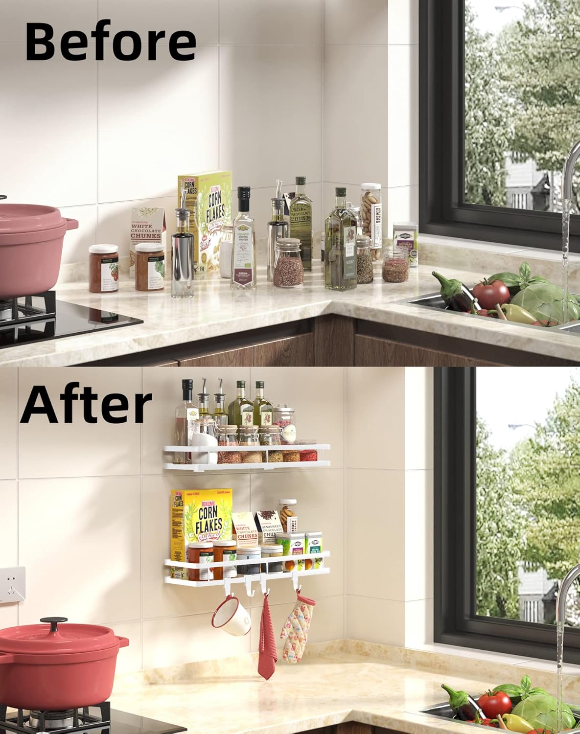 - 【Large Capacity 2 Pack】- It's a wonderful seasoning organizer, easily free up more space for you, with no more clutter in your house and kitchen.Suitable for spices, salt, pepper, sugar, cooking oils, etc. This multifunctional storage rack can also be used in bathrooms, pantries, doors, cabinets.