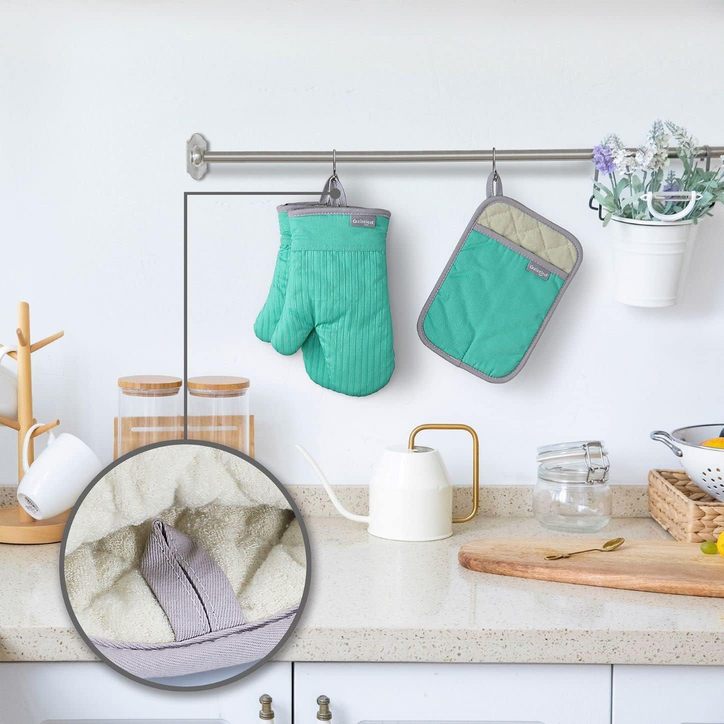 - PERFECT PRACTICAL GIFT FOR ANY HOME CHEF: This versatile and much-appreciated set is the ideal solution for anyone who loves cooking or baking. Its thoughtful combination of functionality (oven mitts + pot holders), modern colors, and easy-care fabric makes it a standout gift for holidays, housewarmings, birthdays, or as a thoughtful thank-you present