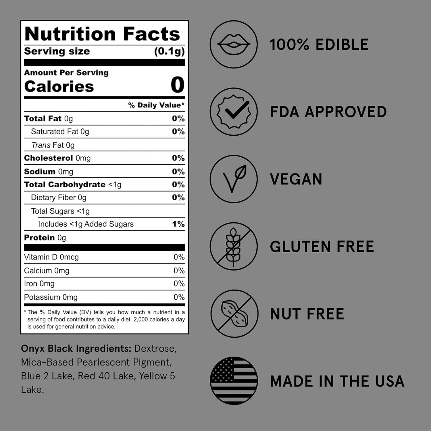 - NO TASTE. NO TEXTURE: Odorless, tasteless, and textureless, Fancy Edible Glitter is approved for both food and drink consumption.