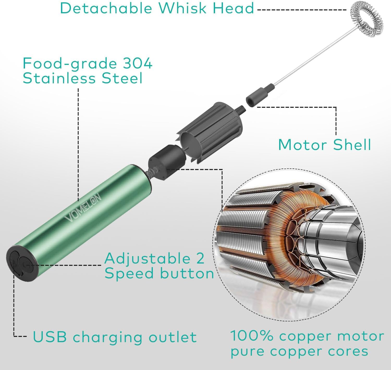 - ✅ POWERFUL MOTOR - This electric milk Frother powered by highly efficient motor, it spins the food grade 304 stainless steel whisks at 20000 RPM, which can foam milk in seconds. It is a convenient method of frothing right in the cup or other container. Powerful motor brings you soft and smooth taste experience. You can make a latte at home by yourself in short time.