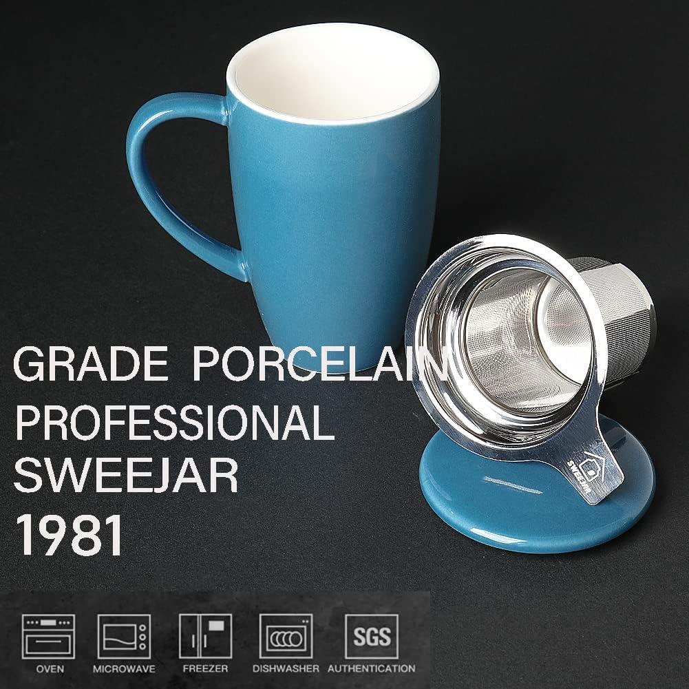 - Durable Material—Sweejar cup is made of reliable porcelain which is breakage-proof. The tea infuser is 18/8 stainless steel. The lid can be used as a tray for the infuser.Ceramic cups is safe for and dishwasher easy to clean.