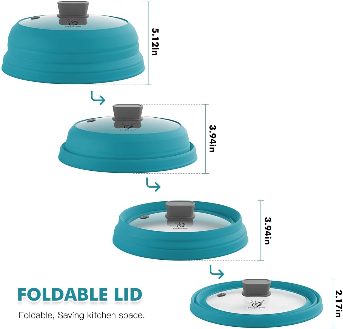 Microwave Splatter Cover Glass Cover Splatter Guard Lid with Collapsible Silicone for Food Cover Plate Cover 10.8 inch Blue