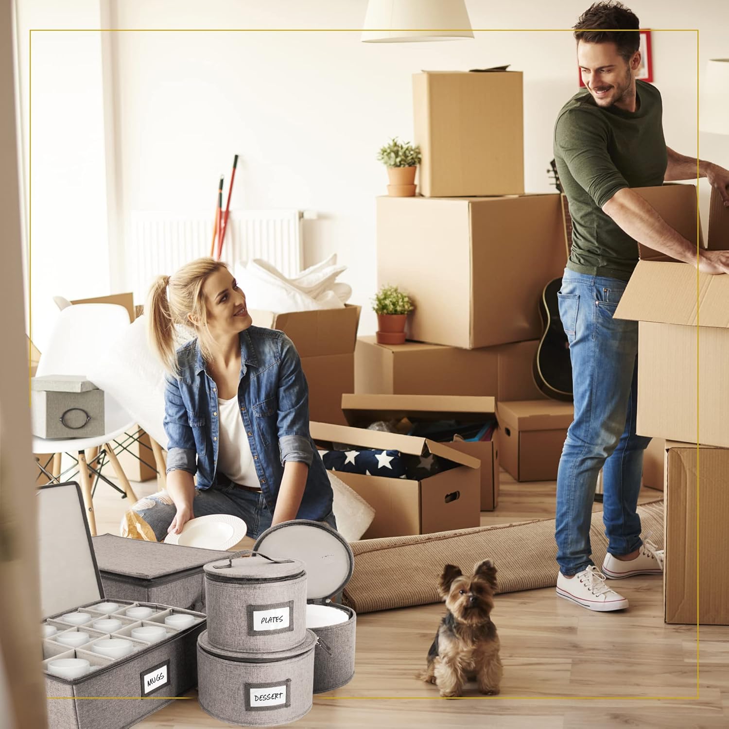 HOMELUX THEORY Hard Shell China Storage Containers for Dishes, 5pcs Flatware & Plate storage Containers, Heavy Duty Dish and Dinnerware Storage with Lid for Packing Dinner Plate, Utensil & Silverware