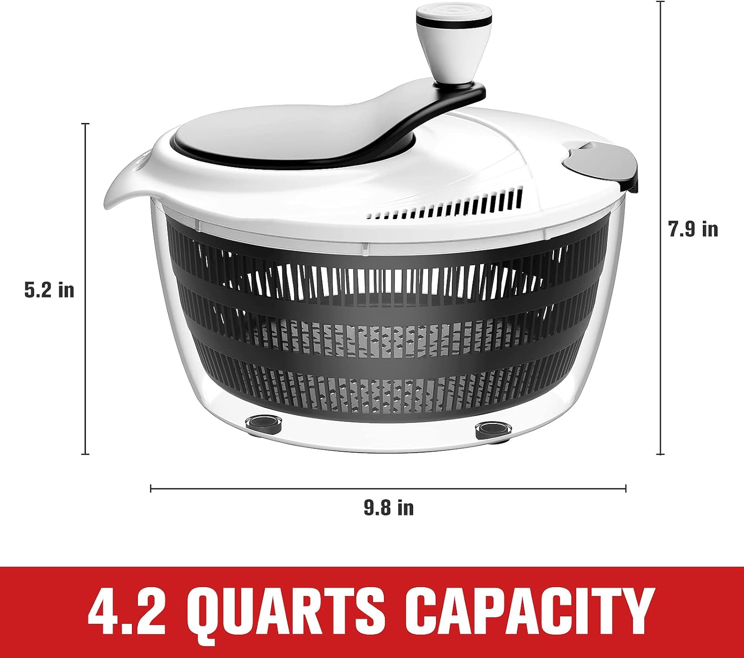 - Adequate Capacity: The Salad spinner comes with a 4.2Qt bowl and separate colander; You can process enough salad greens for your family at once. The lid of the Salad spinner is foldable, which greatly save the kitchen space