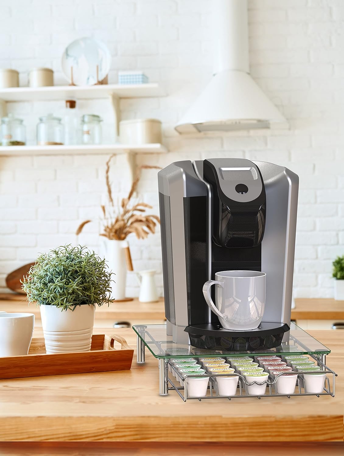 Deco Brothers Crystal Tempered Glass K-Cup Holder Drawer for 30 Coffee Pods Storage, Chrome