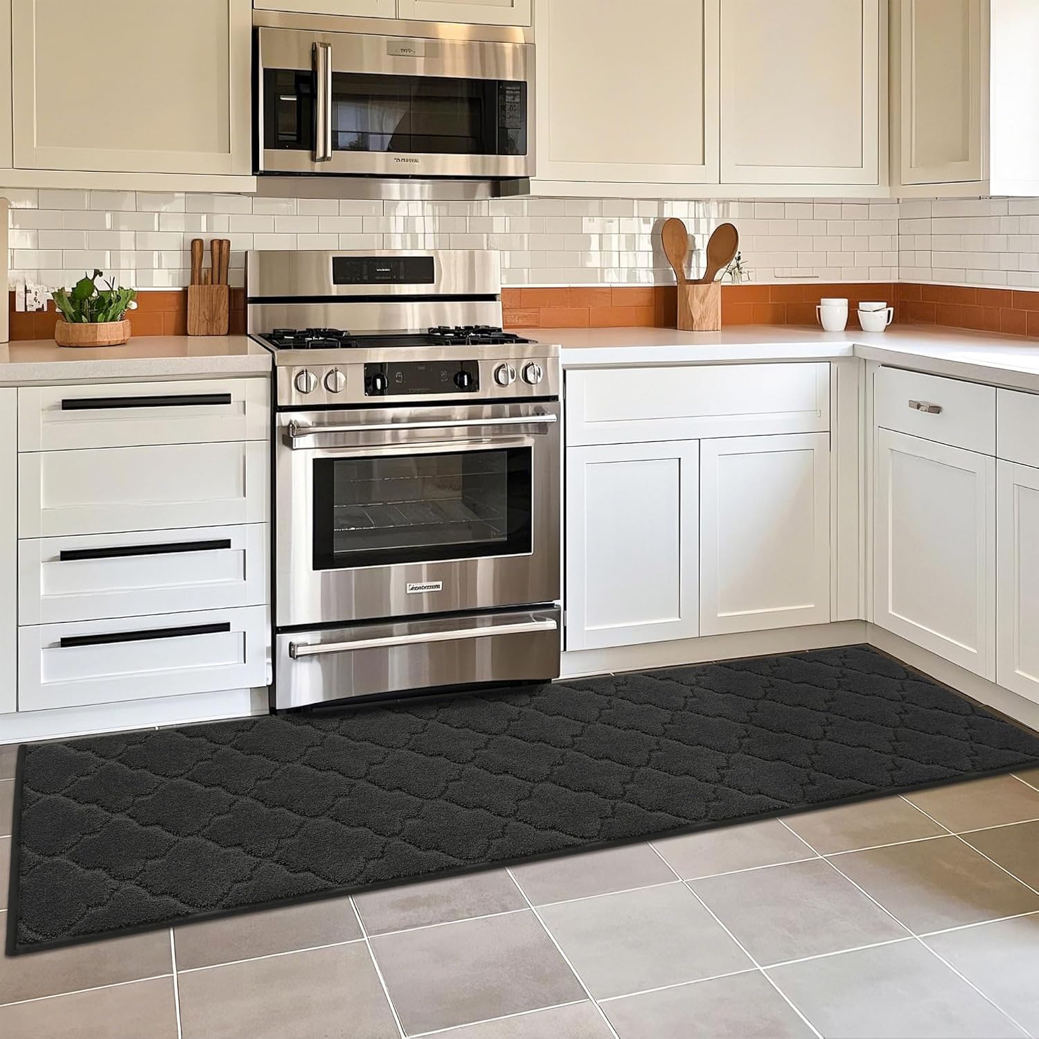 COSY HOMEER Soft Kitchen Floor Mats for in Front of Sink Super Absorbent Kitchen Rugs and Mats 20"x79" Non-Skid Kitchen Mat Standing Mat Washable,Polyester,Black