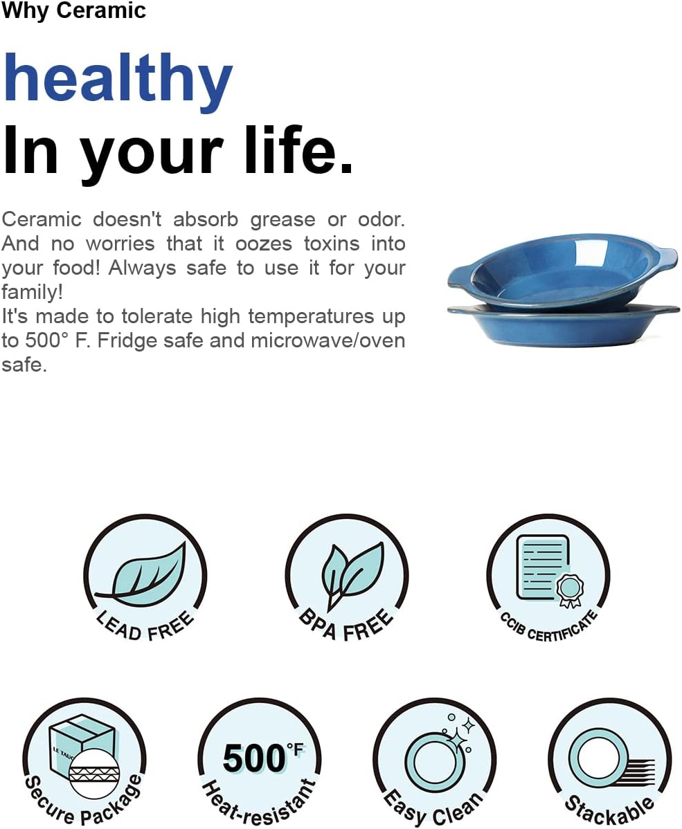 - Environmentally Friendly And Finely Detailed: Each LE TAUCI ceramic pie plate is made of all-natural clay, water, and gas, with no synthetic or toxic substances. We take pride in offering an environmentally friendly and sustainable alternative to glass or metal pie pans. Plus, our ceramic pie dishes are created with the finest detail and craftsmanship, making them piece of art in your kitchen