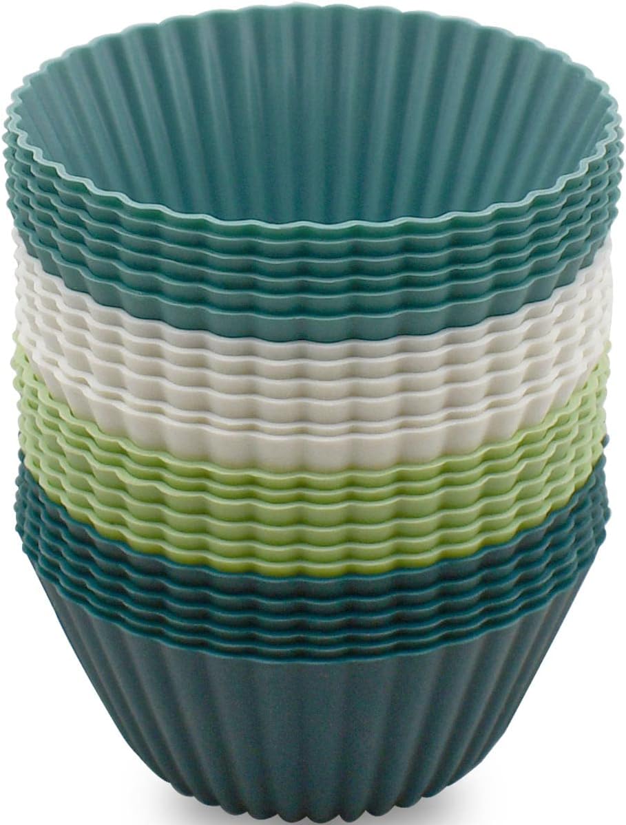 - 【Standard Size】Navy, dusty blue, green, white, our silicone cupcake holders have 4 kinds of different colors, six for each color. They are standard size, compatible with most muffin pans. Stand up to 446°F (230°C) high temperature and -40°F (-40°C) low temperature without breaking, melting. Microwave, oven, and freezer safe
