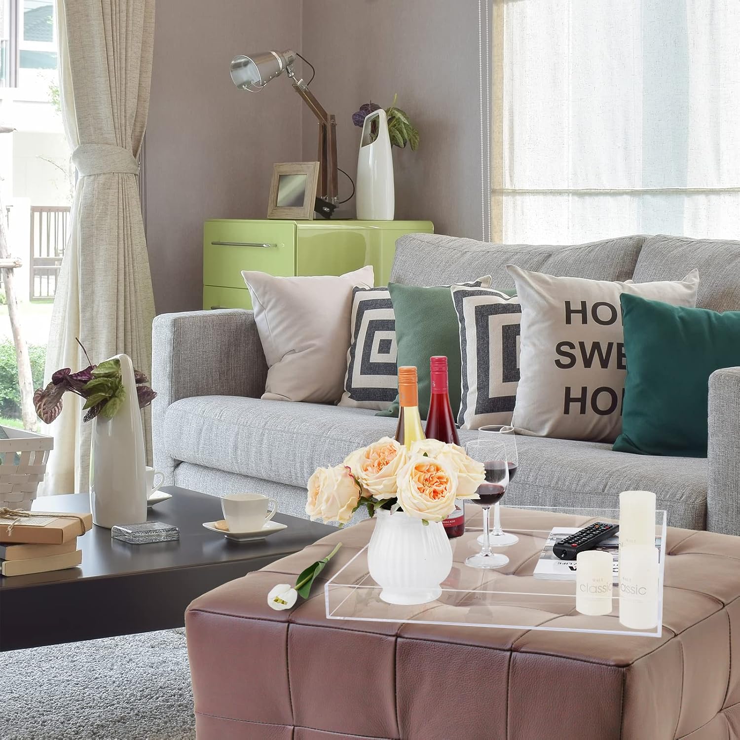 18×18 Inches Clear Acrylic Serving Tray with Handles Extra Large Ottoman Tray Decorative Trays Spill-Proof Coffee Table Space Saver Oversize Counter top Organizer Platter with Safe Edge