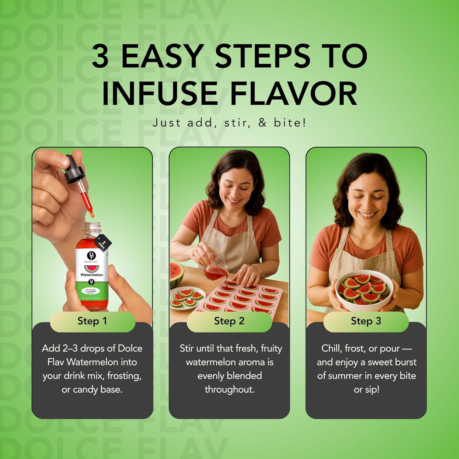 - Perfect for Crafting Confectionery Delights: Our watermelon flavoring infuses your culinary creations with the bold and authentic taste of ripe watermelon, excelling in recipes where traditional extracts may fall short, ensuring a burst of refreshing fruity goodness.