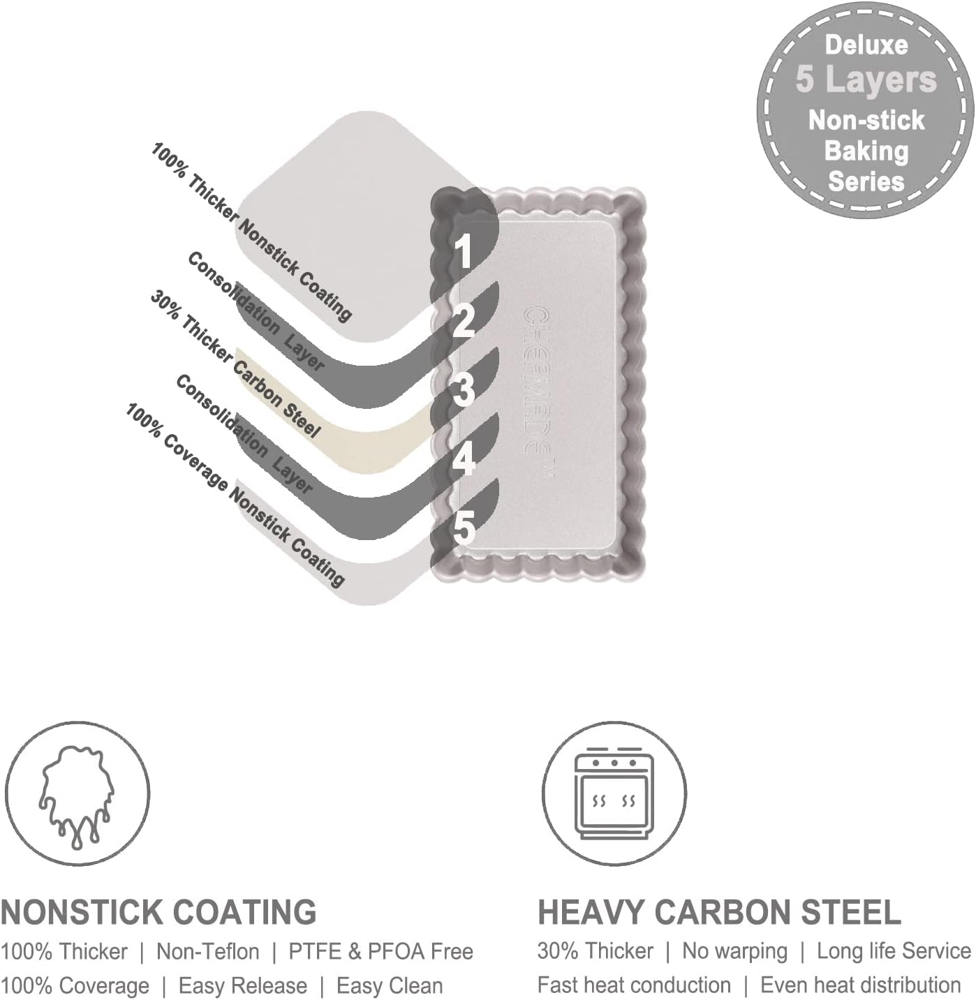 - Easy to Use : Excellent non-stick can be achieved with less natural cooking oil. Less baking time and low energy consumption. Release easier Clean easier
