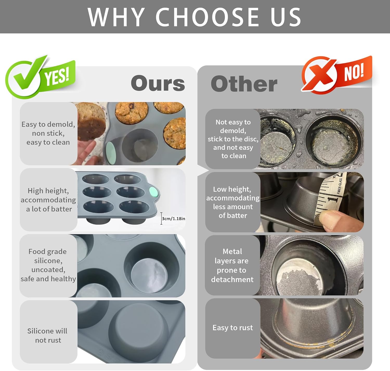 To encounter Small Silicone Muffin Pan, 2 Pack 12-Cup, Nonstick Baking Cups, Cupcake Pan with Metal Reinforced Frame More Strength