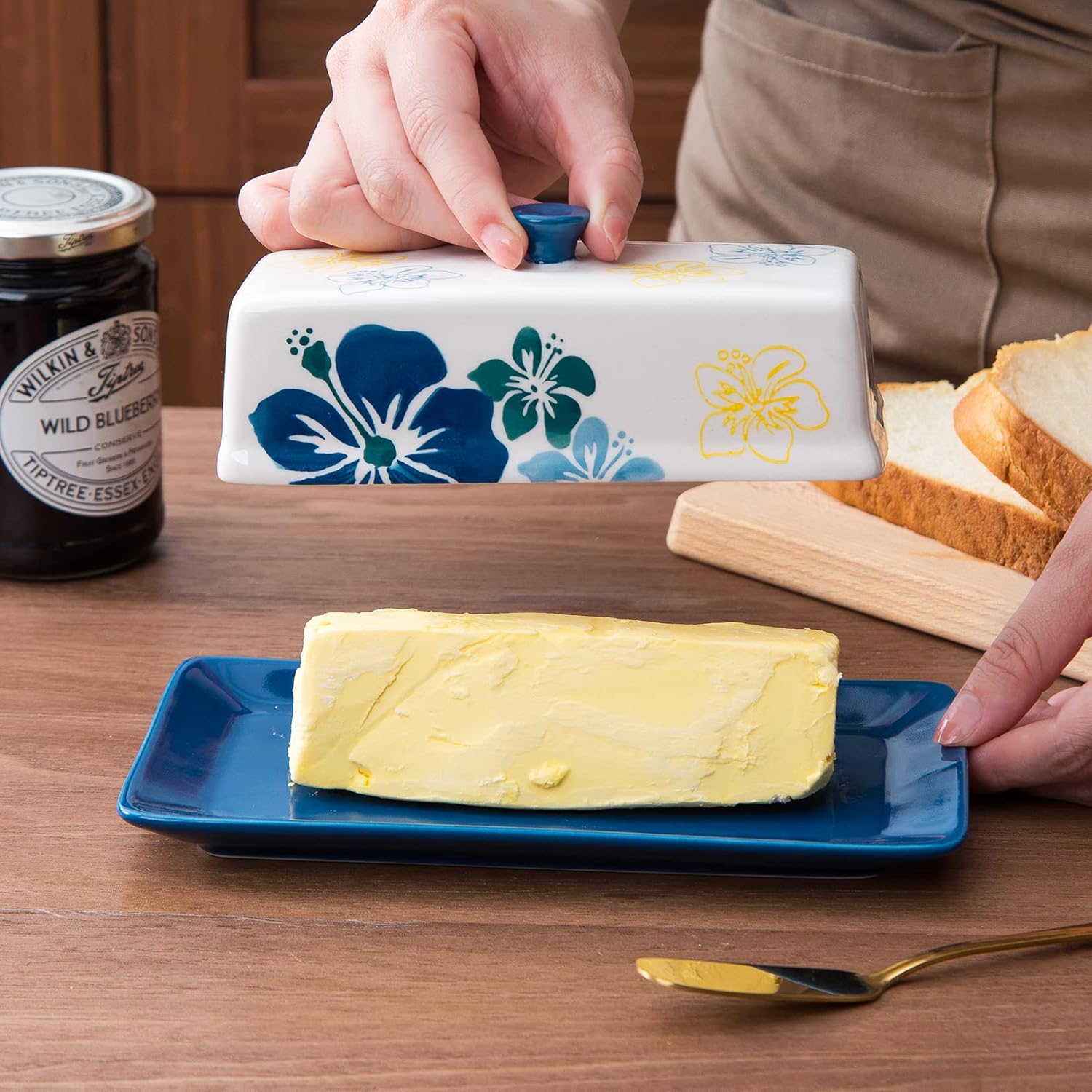 Butter Dish Ceramic Butter Keeper Butter Dish with Lid, Butter Container, Blue