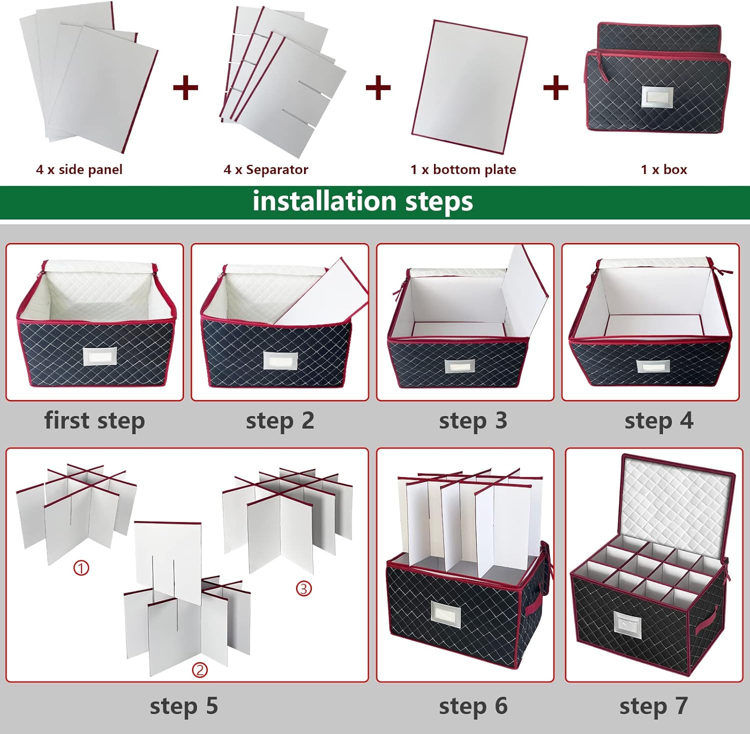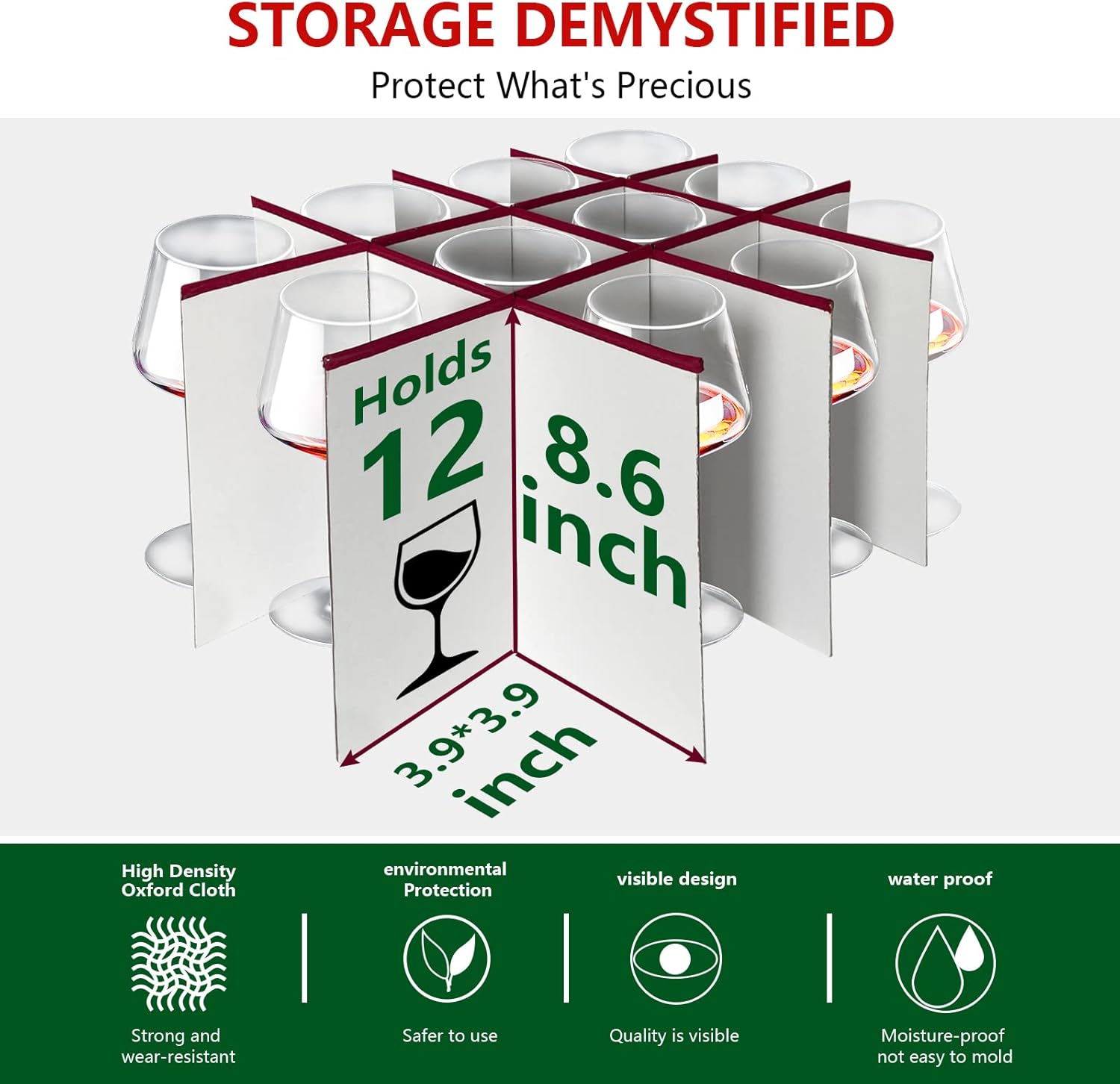 - [24 SEPARATE COMPARTMENTS DIVIDERS] Cup cardboard divider to keep glassware secure from breakage.Wine Glass Storage can be stored in hutches, cabinets, pantry closets, or buffet.