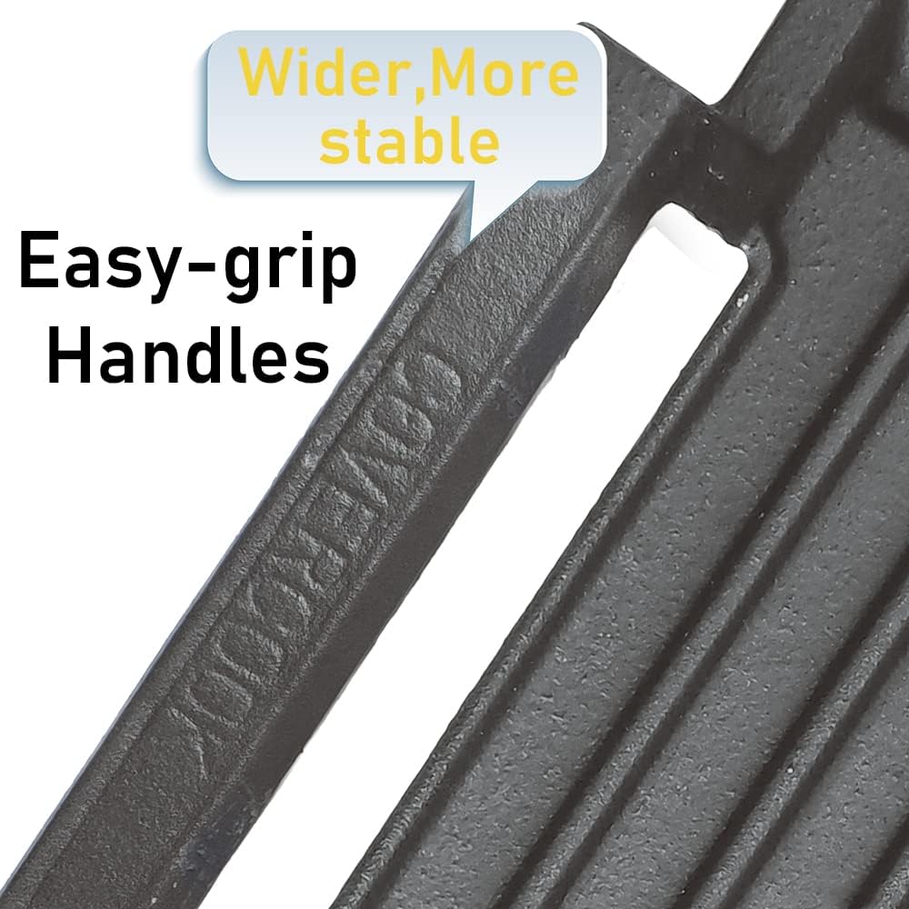 - 【Cast Iron Griddle Pan】 The griddle pan is made by strong durability cast iron,performing long lasting use. With NO chemical rust protection layer, cook in a healthier way. The griddle pan comes with 2 handles for easier grip with pot holders, better bearing capacity, can hold lots of food at the same time.