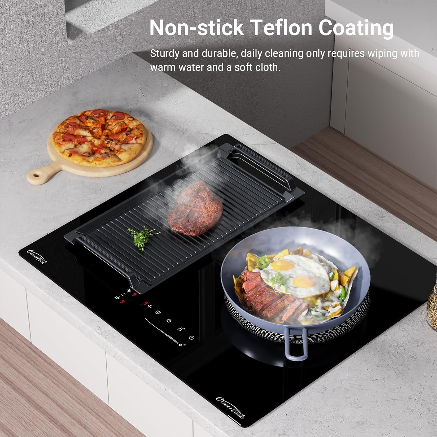 - 【Even Heat Pan Base】 The griddle adopts larger magnetized base, which distribute heat quickly and evenly. Well maintain the original flavor of food,also can be kept warm for a period of time.