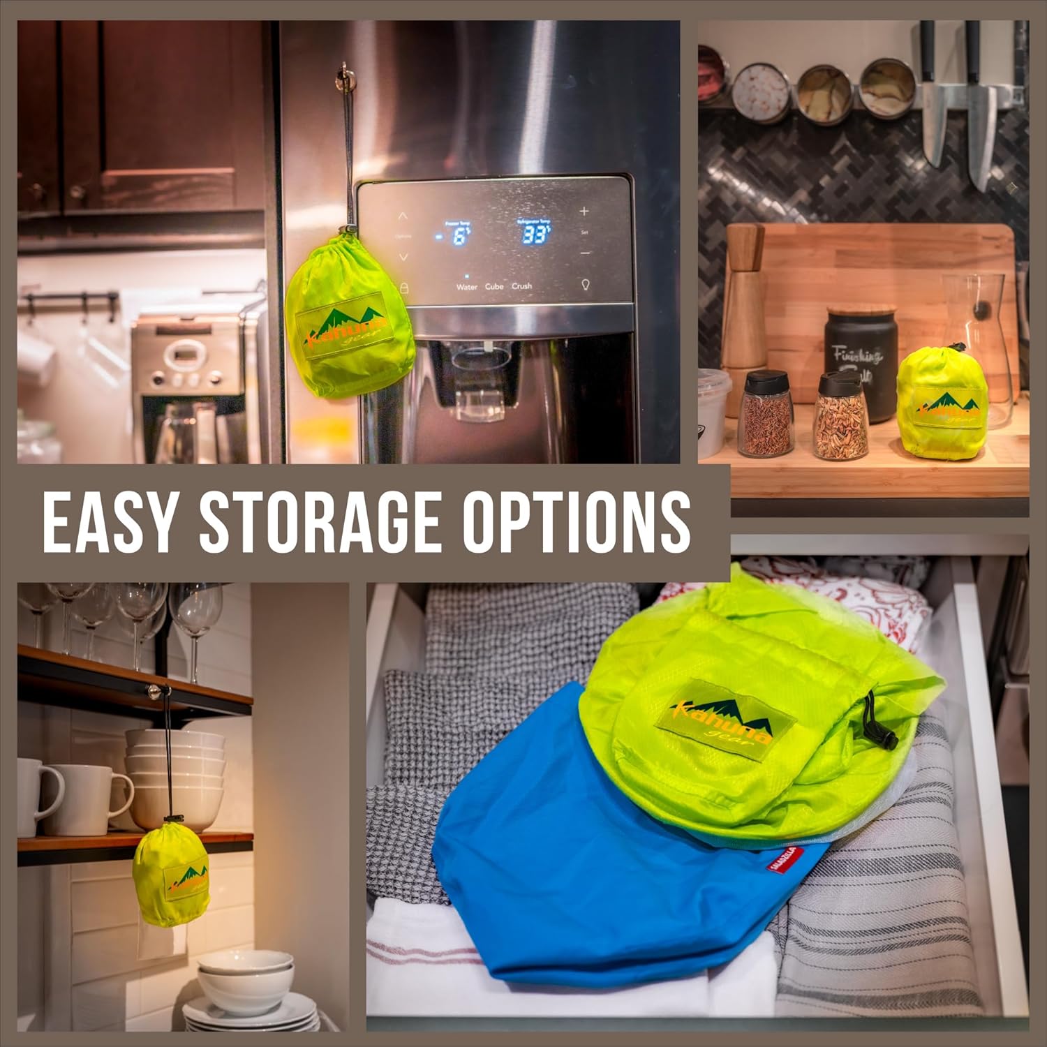 - 🔨DURABILITY - No Plastics to Crack or Mechanical Parts to Break: Saladzilla's made of diamond ripstop fabric. It's the same material used in the high-end backpacking equipment. Hence, tough for the outdoor environment yet light in weight for performance. Our proprietary fabric is free of harmful chemicals and food-safe. It's also quick to dry