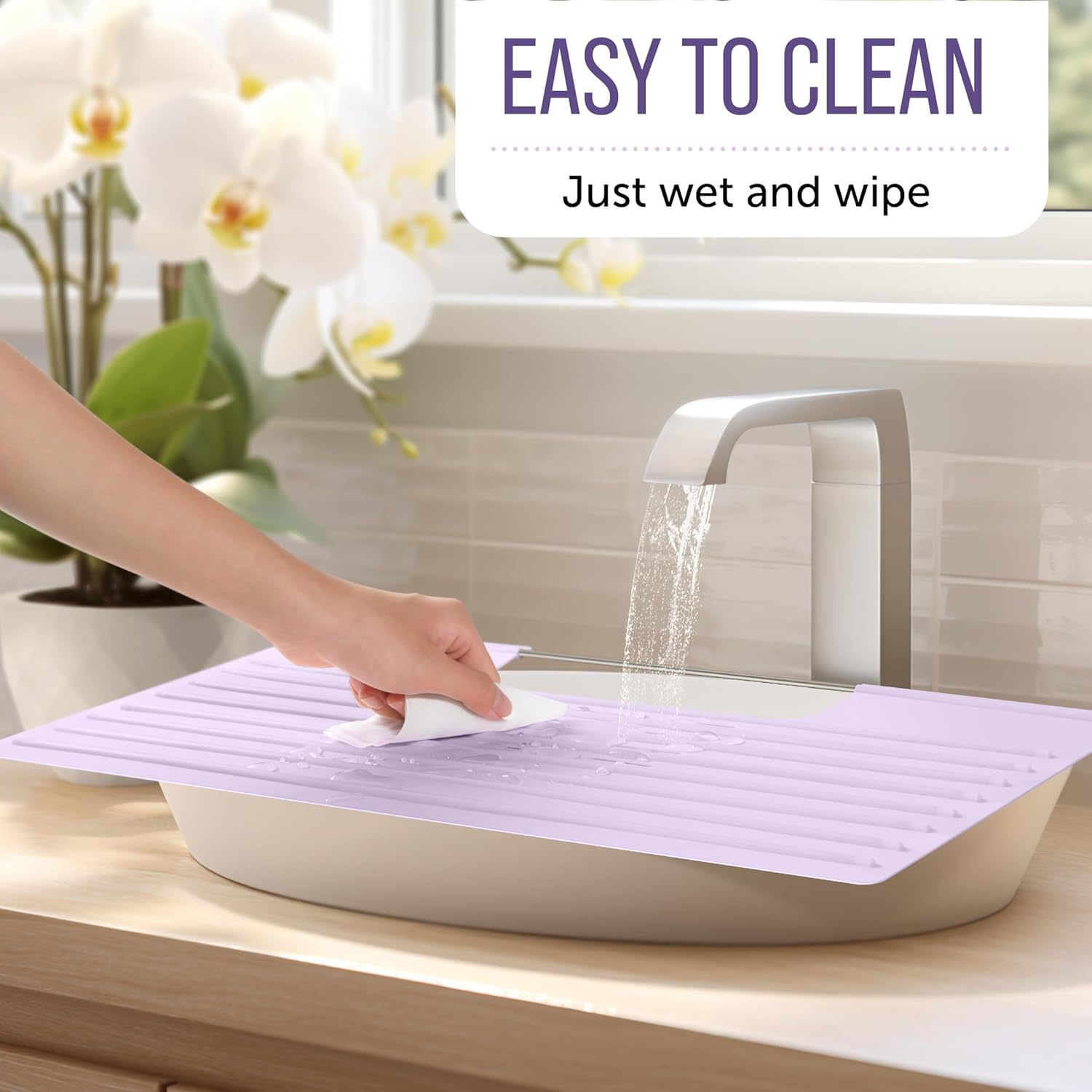Maplefield Bathroom Sink Cover for Counter Space, Heat Resistant Silicone Sink Mat for Your Beauty Routine, Small Bathroom Space Saver Sink Cover for Makeup (Lavender Large, 22 x 2 x 2 Inches)