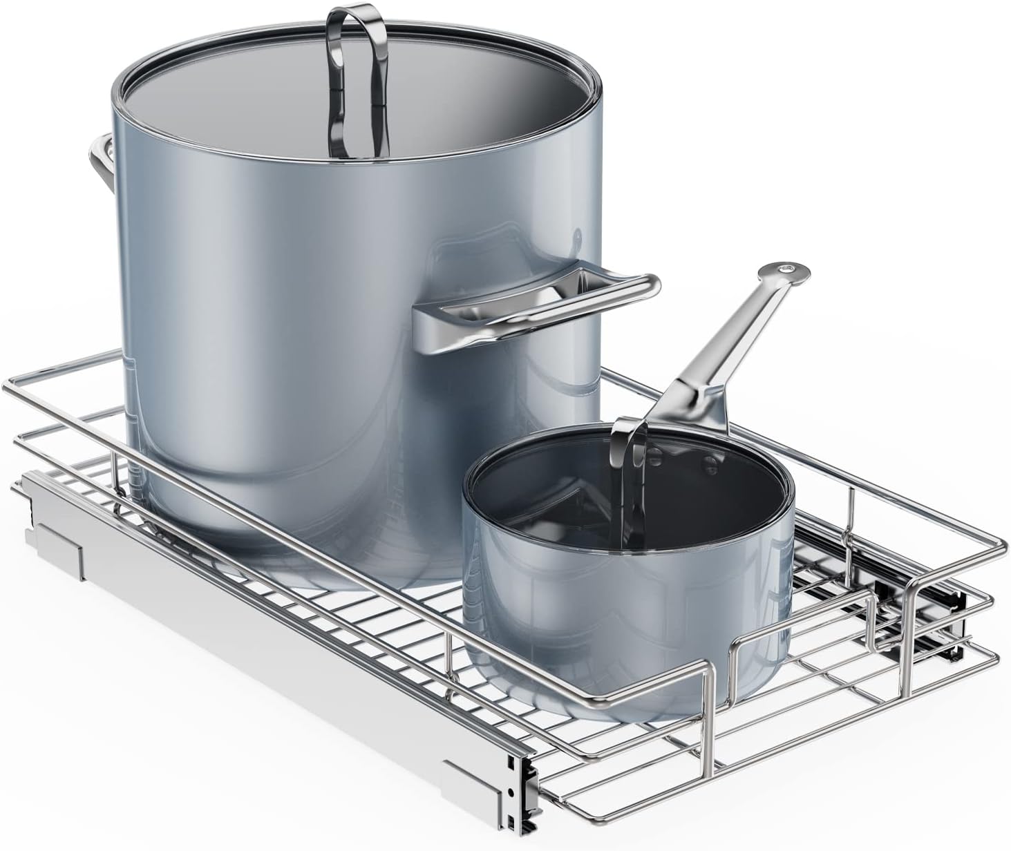 - ROOMTEC Pull Out Cabinet Organizer, 2 Tier Slide Out Cabinet Organizer