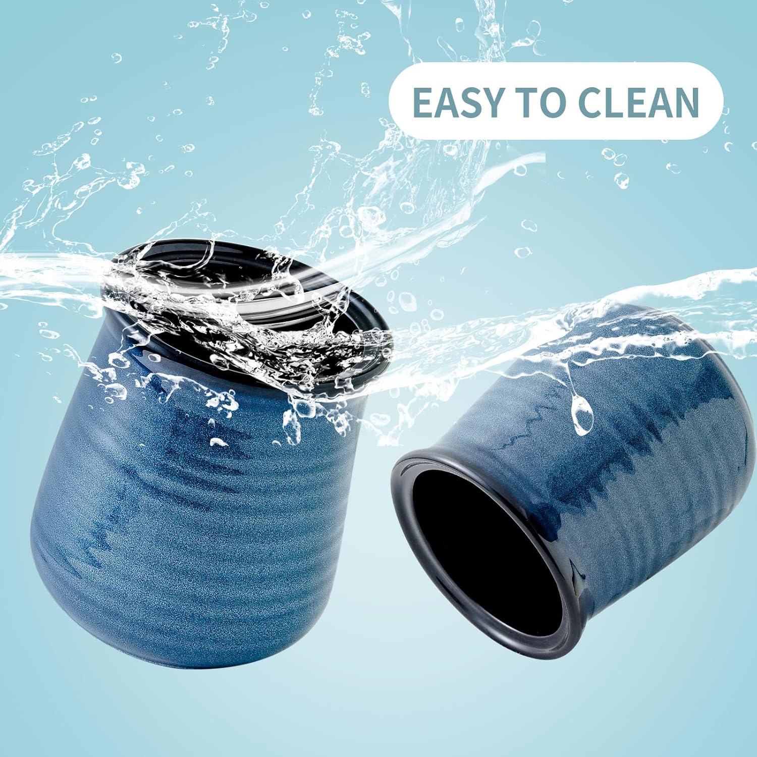 Hasense Large Utensil Holder Crock for Kitchen Counter, 7.1" Ceramic Cooking Utensil Organizer for Countertop, Farmhouse Vintage Utensil Caddy for Spatula Spoon, Rustic Home Table Decor, Blue