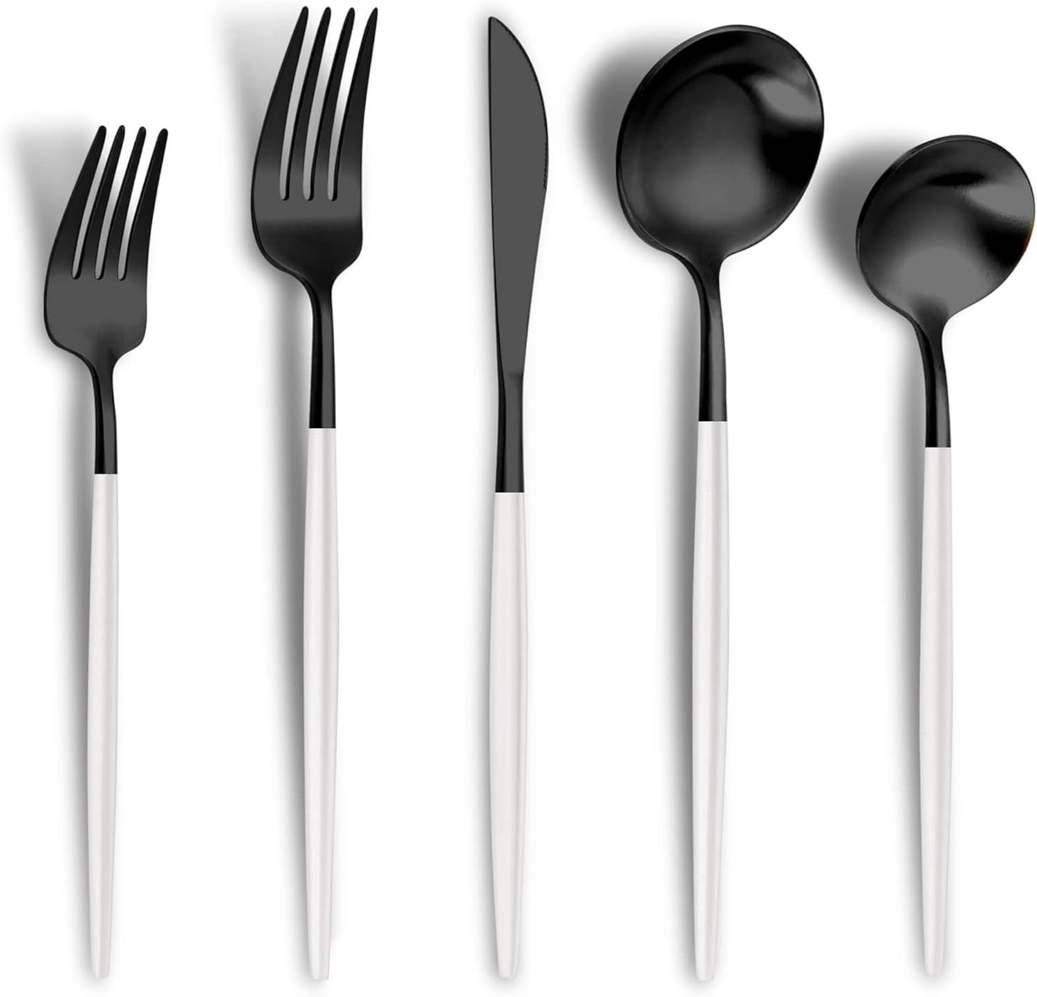 Matte Black White Silverware Set for 4,Modern Stainless Steel Brushed Cutlery Set,20-Pieces Heavy Duty Flatware Set,Knives Spoons and Forks Set Utensils Set, Satin Finish, Dishwasher Safe
