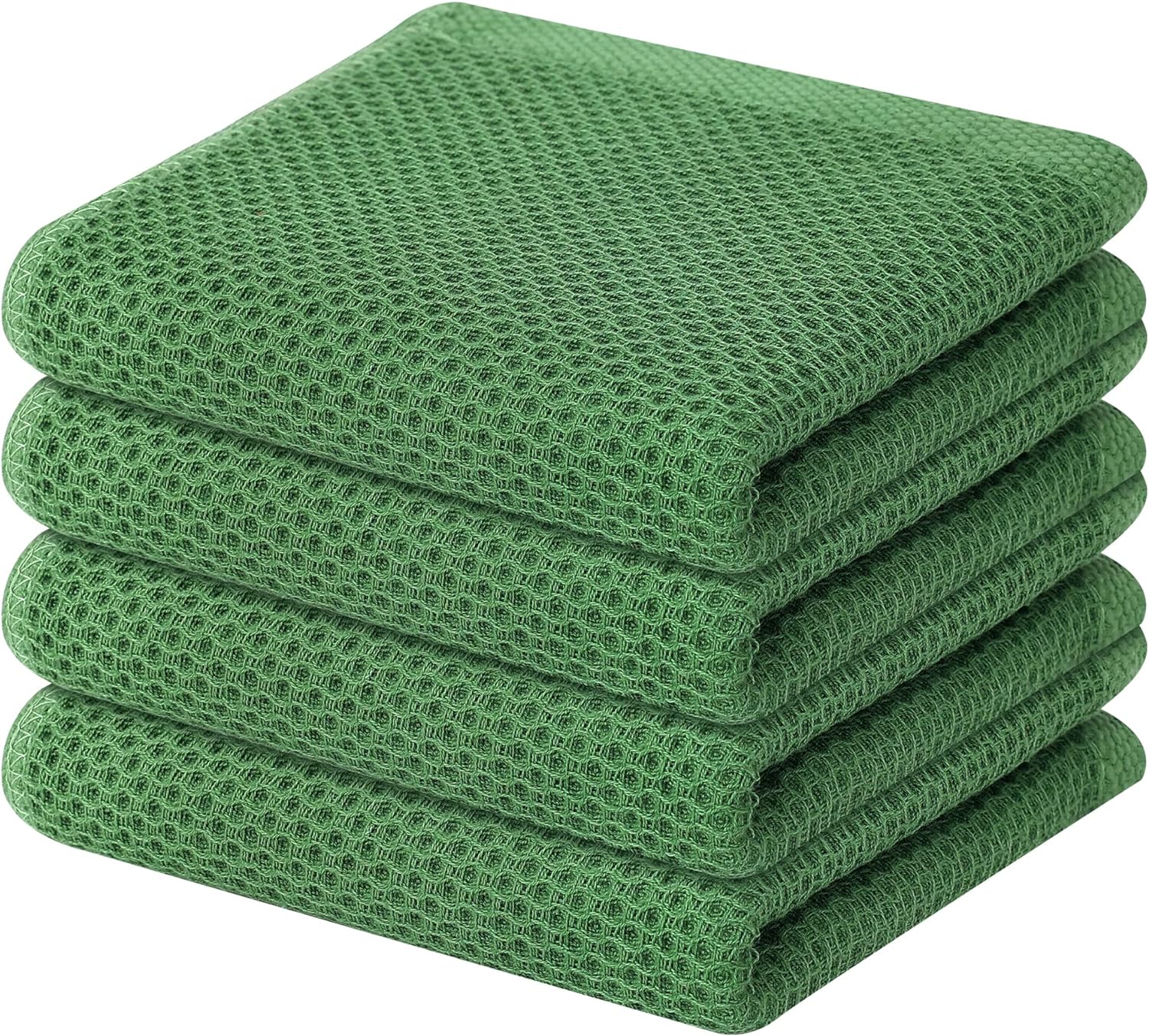 Homaxy 100% Cotton Waffle Weave Kitchen Dish Towels, Ultra Soft Absorbent Quick Drying Cleaning Towel, 13 x 28 Inches, 4-Pack, Grass Green