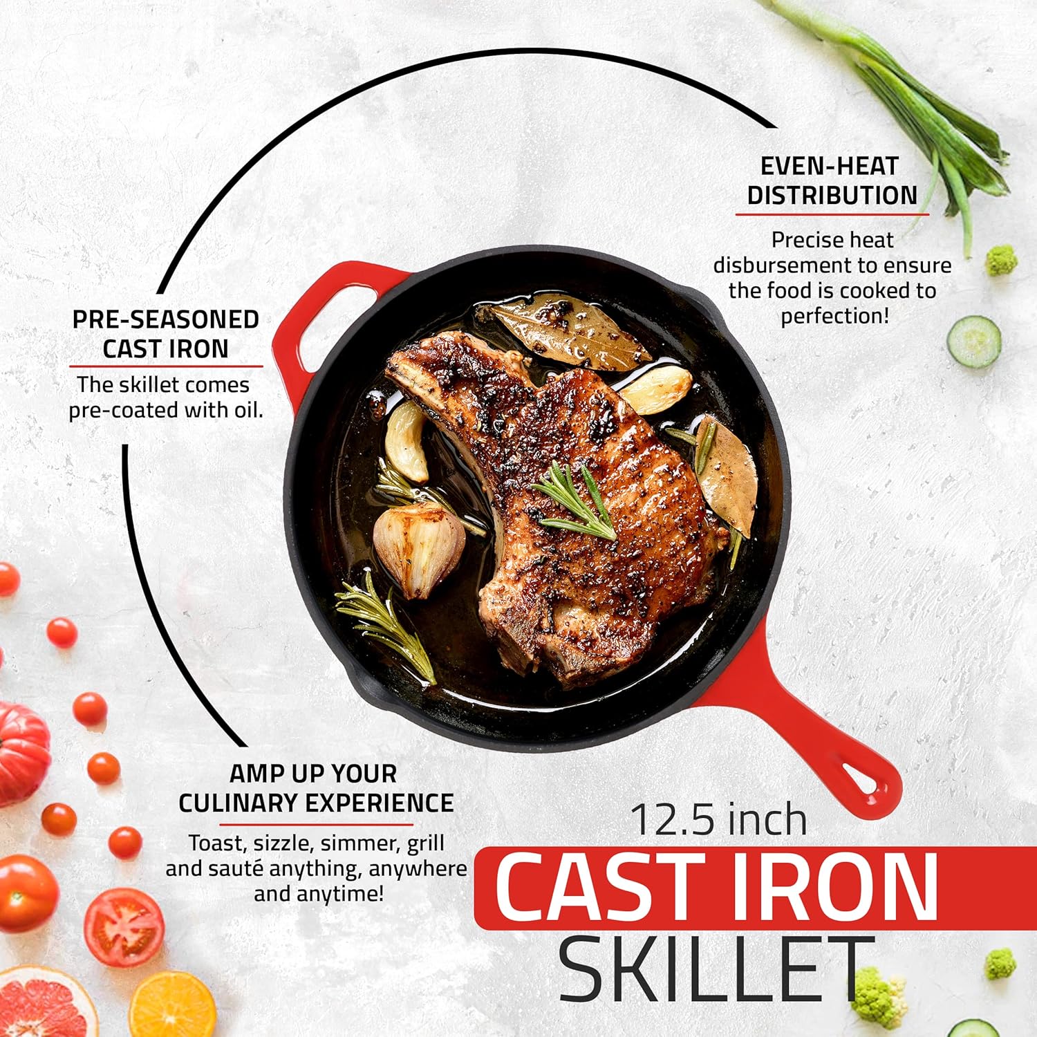 Utopia Kitchen Cast Iron Frying Pan 6.5 Inch, Cast Iron Chefs Pan, Pre Seasoned Skillet, Safe Grill Cookware for Indoor & Outdoor Use, Red