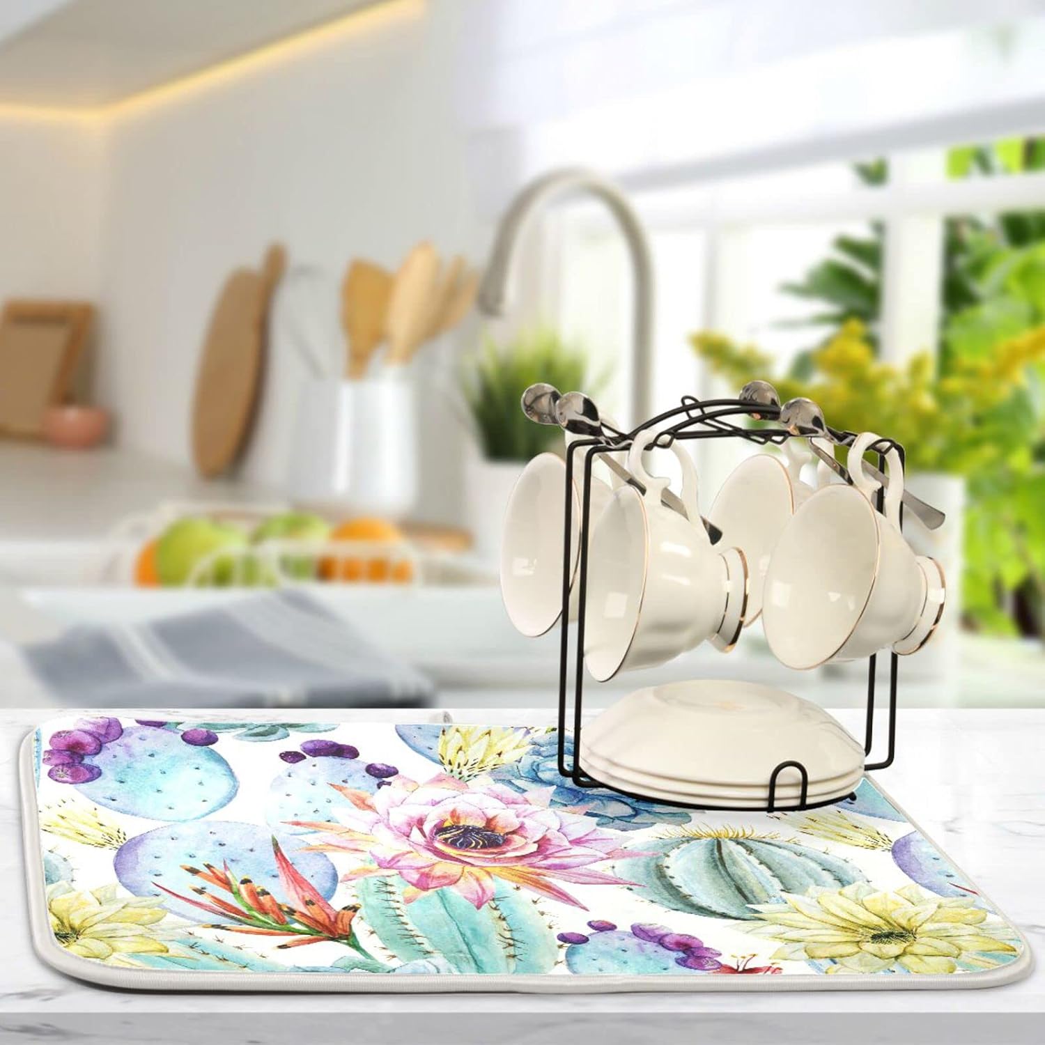 Cactus Succulent Plant Dish Drying Mat for Kitchen Counter Absorbent Microfiber Drying Pad, Large 18x24 in, Reversible Drainer Mats