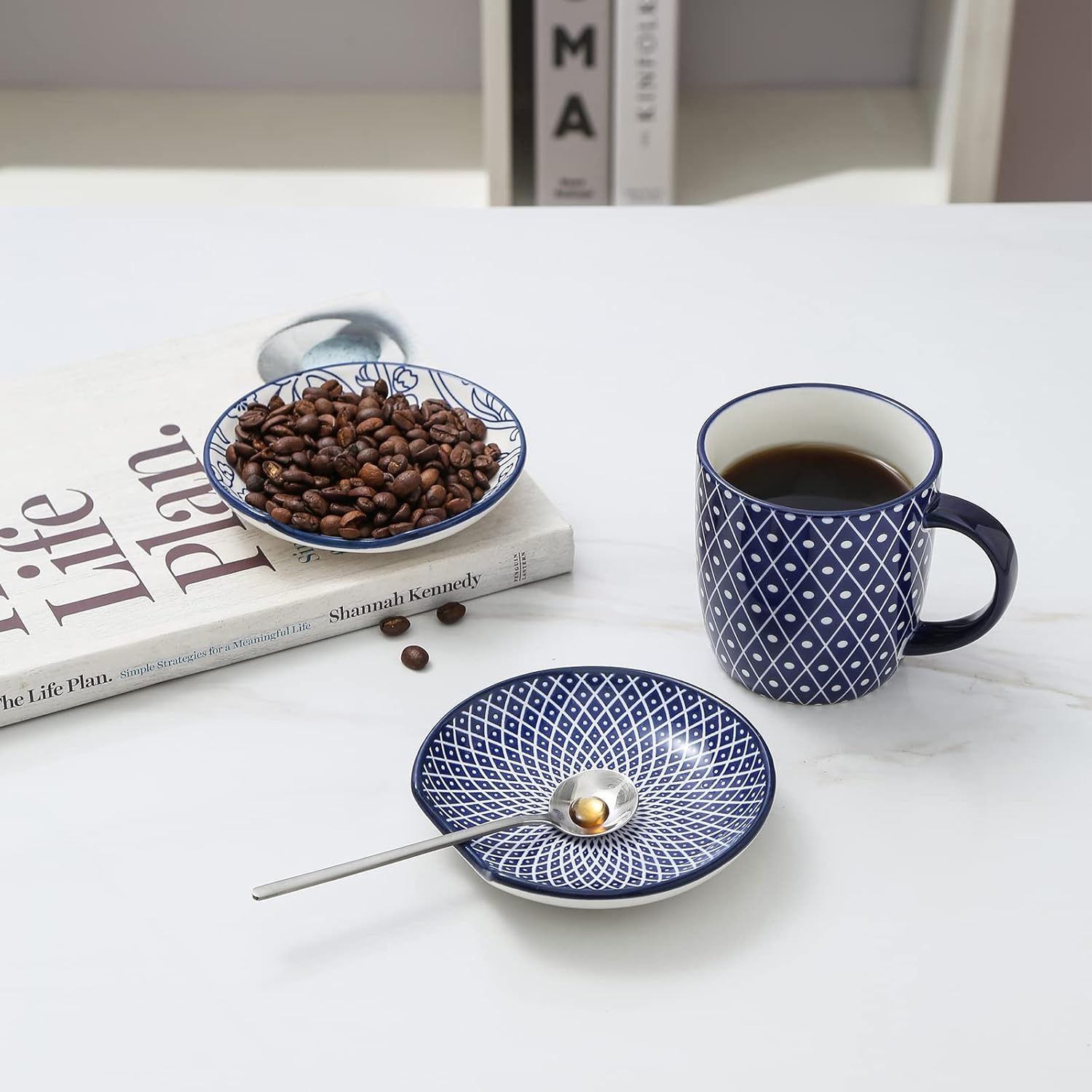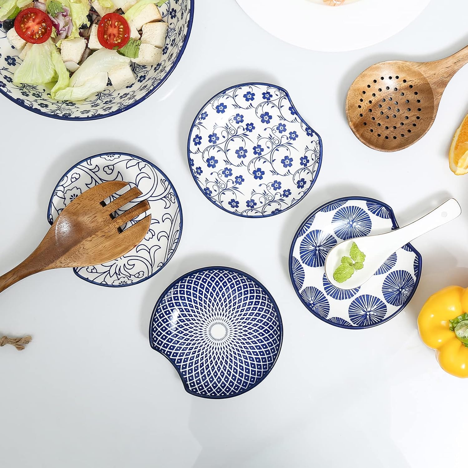 - PRACTICAL & DELICATE DESIGN - Each coffee spoon holder featured a circular depression design to keep the utensils in place. The slightly raised edge reduces the contact area with the table and collects all the water dripping from your cookware better. The assorted patterns decorated with vibrant colors can easily enlighten your dining table!