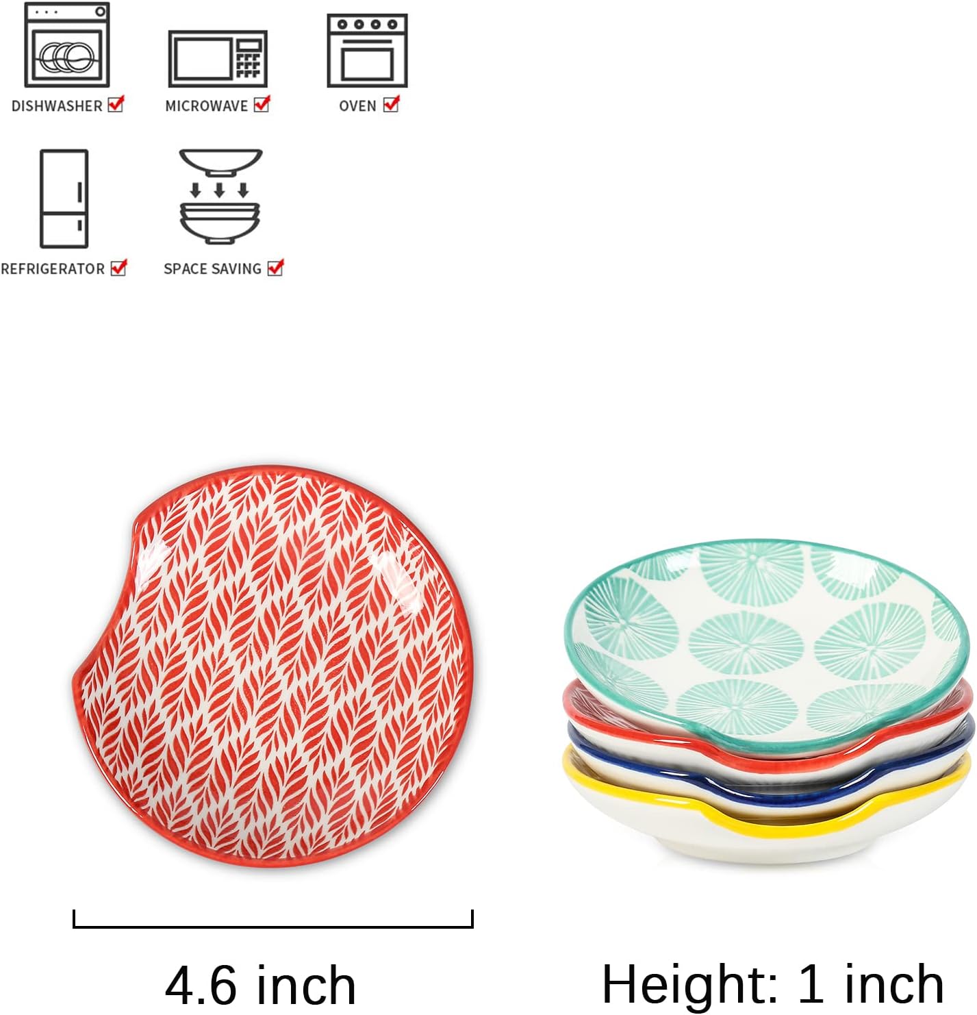 - VERSATILE, NOT JUST FOR SPOON REST - Our 4.6 Inch cooking spoon rests are not only designed for accommodating a wide variety of utensils like a whisk, fork, basting brush, large soup spoon, coffee spoon, tongs, and more but also for use as a small tray or saucer dish to hold dessert, snacks, appetizer, fruit, nuts, beans, etc.