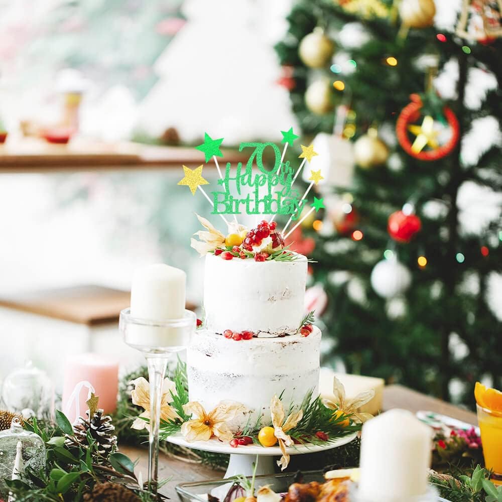 Glittery 70th Happy Birthday Cake Topper with Star,Personalised 70 Birthday Cake Toppers Party Decorations Party Supplies for Boys Girls Green Gold