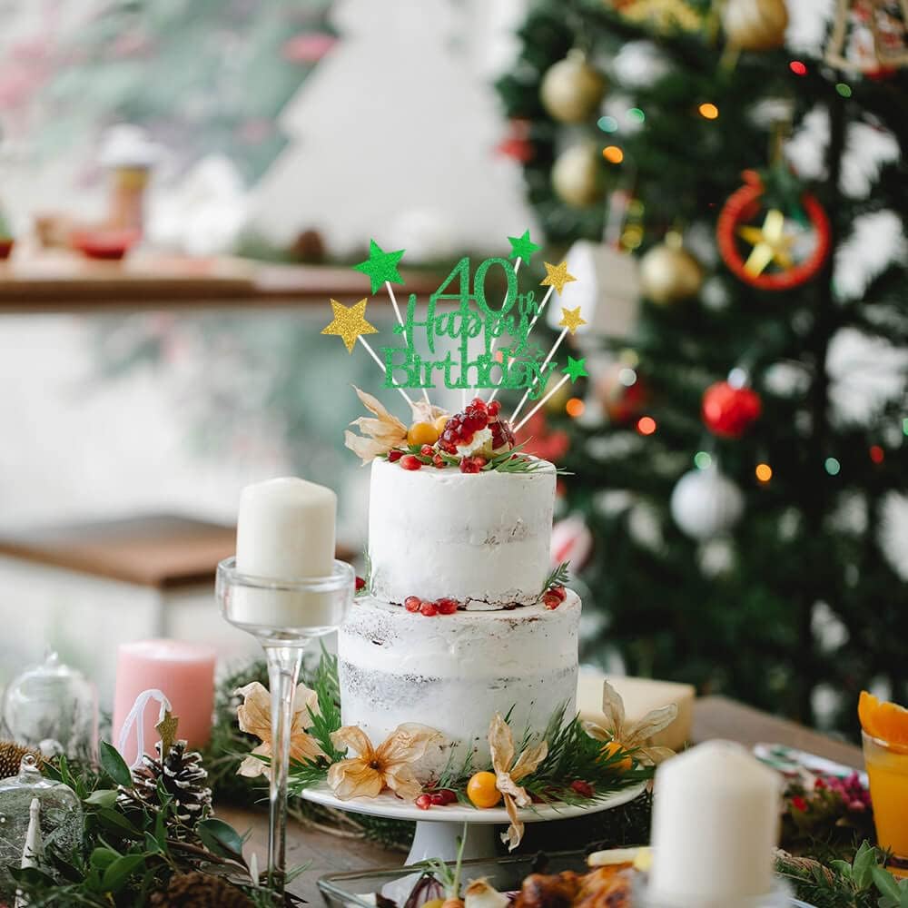 Glittery 40th Happy Birthday Cake Topper with Star,Personalised 40 Birthday Cake Toppers Party Decorations Party Supplies for Boys Girls Green Gold