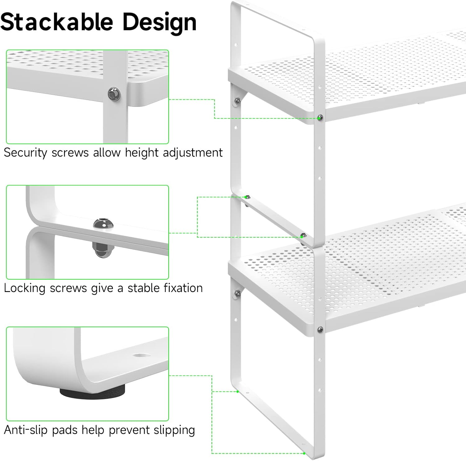 - Stackable Shelves: You can stack one shelf on top of another to creat multiple levels of storage space. You can choose 1, 2 or 3 tier shelving unit to meet your needs. The shelf stand is perfect for kitchen cabinets, pantries, countertops, under the sink or anywhere you need extra space to maximize storage and organization.
