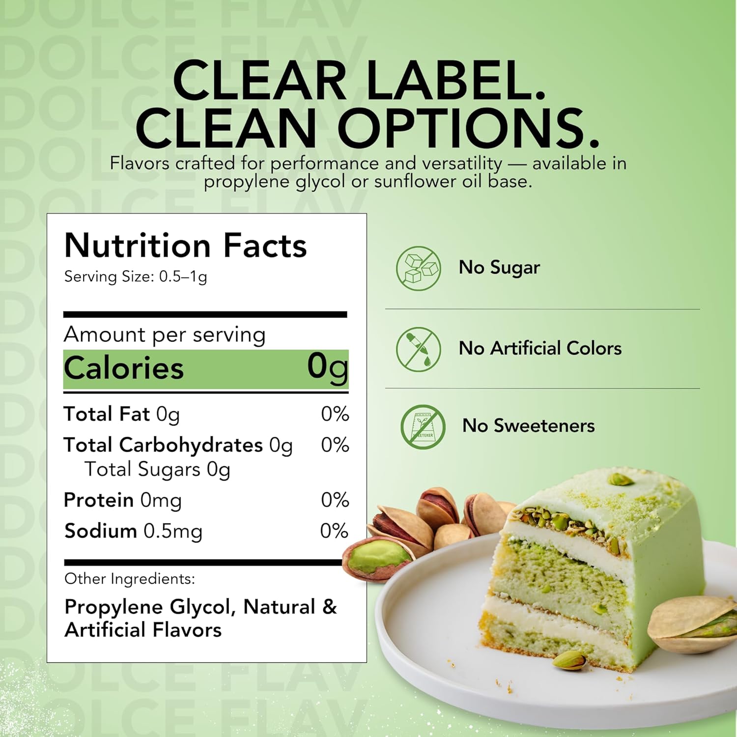 Dolce Flav Pistachio Extract – 2 Ounce Water-Soluble Kosher, Sugar-Free, Concentrated Nutty Pistachio Flavor for Baking, Ice Cream & Pastries, Includes Measured Dropper