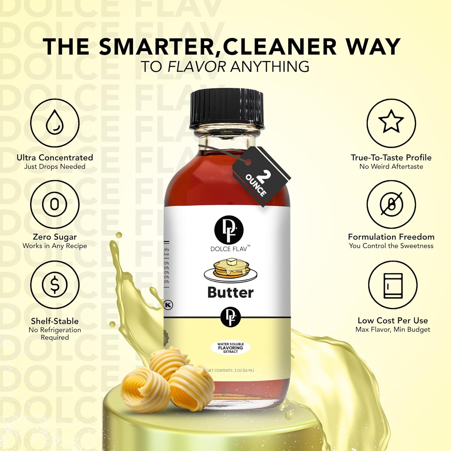 Dolce Flav Butter Extract – 2 Ounce Water-Soluble Kosher, Sugar-Free, Concentrated Imitation Butter Flavor for Baking, Cookies & Frostings, Includes Measured Dropper