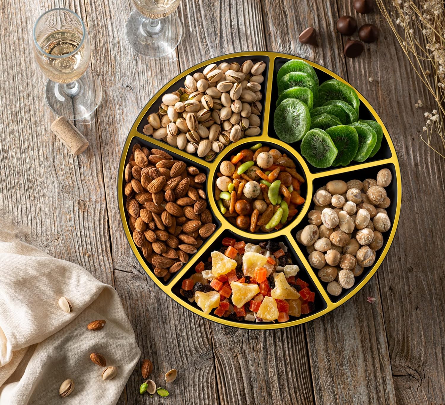 - USE: Plasticpro 6 Sectional Part Platter is Great for Use for Cut up Veggies, Nut Platter, Candy Platter, Veggy's & Sauce in the Center Weddings, Family gatherings, Holidays, Birthday Party's & for Every Event