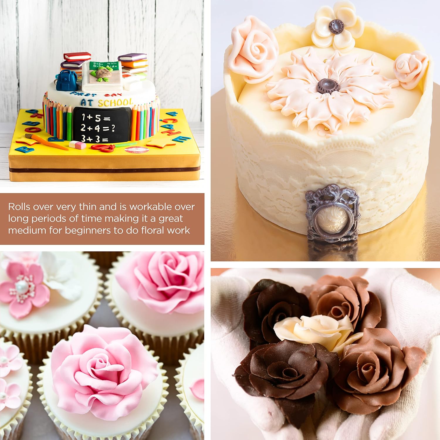 - Versatile and Elegant - Color modeling chocolate with gel, paste, powder pigment, or oil-based food color when kneading; can be mixed with fondant and gum paste. Rolls thin and is workable for long periods, ideal for beginners doing floral work.