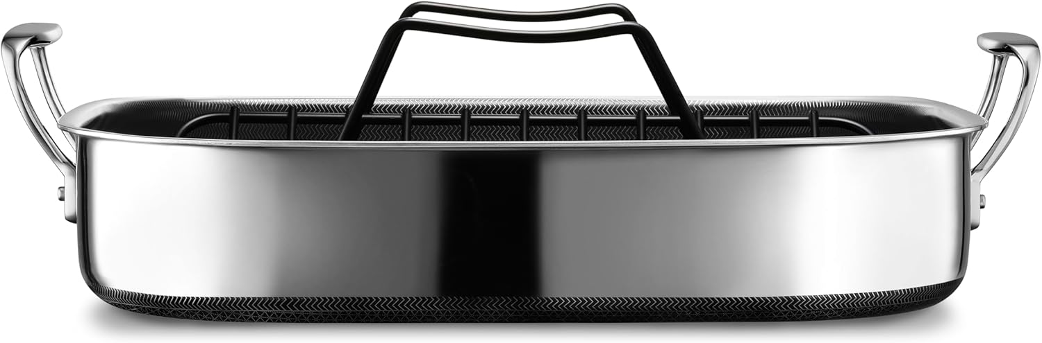 HexClad Hybrid Nonstick Roasting Pan with Rack, Dishwasher-Friendly, Oven-Safe Up to 900°F, Compatible with All Cooktops