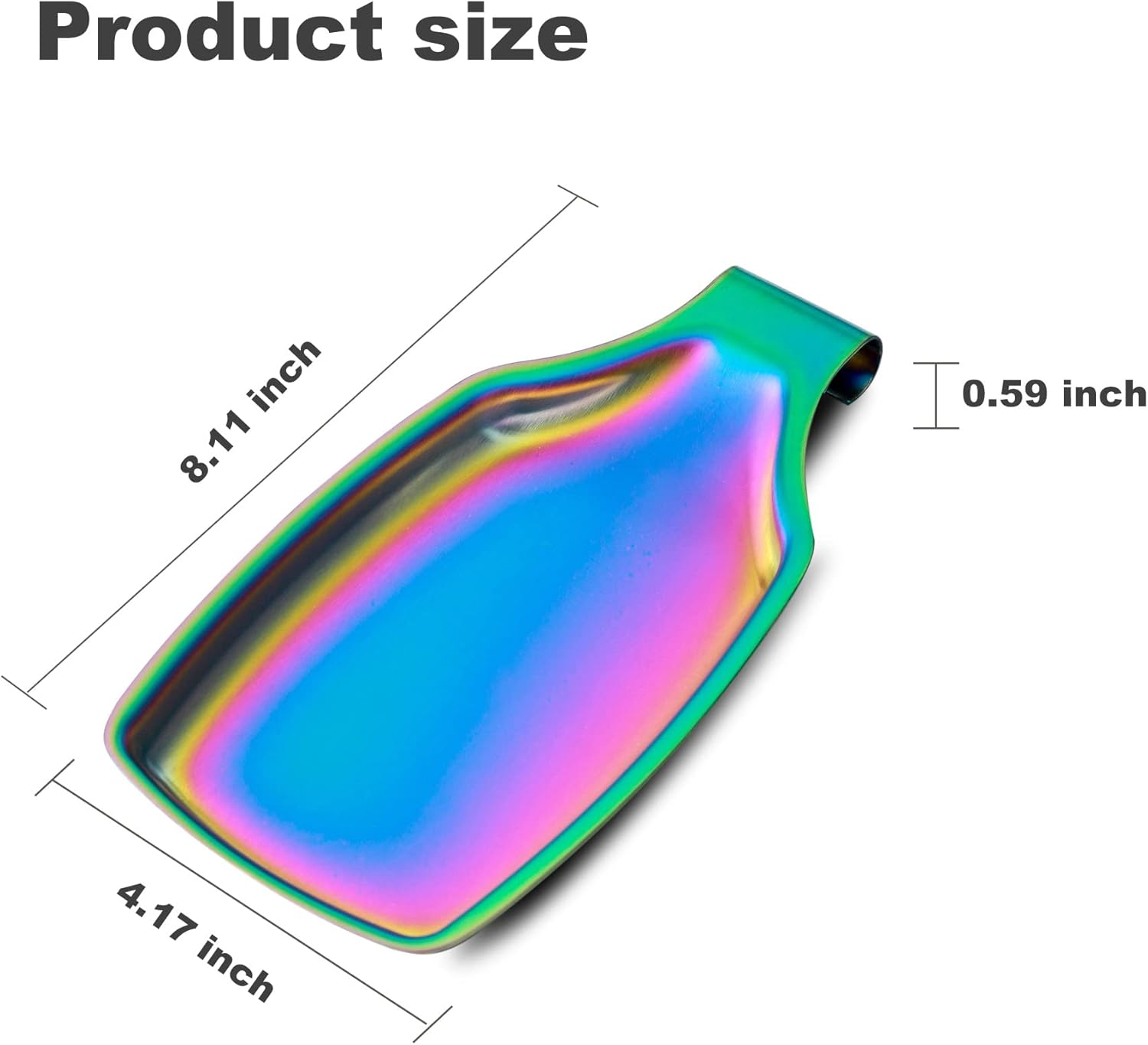 - Modern Design: The colorful spoon rest will be obvious in your kitchen and looks luxury, this iridescent kitchen accessories will match your kitchen if most of your utensils are most rainbow. Fashion style with modern look adds an attractive to the kitchen, the modern utensil rest help to keeping your counters and stove tops tidy.