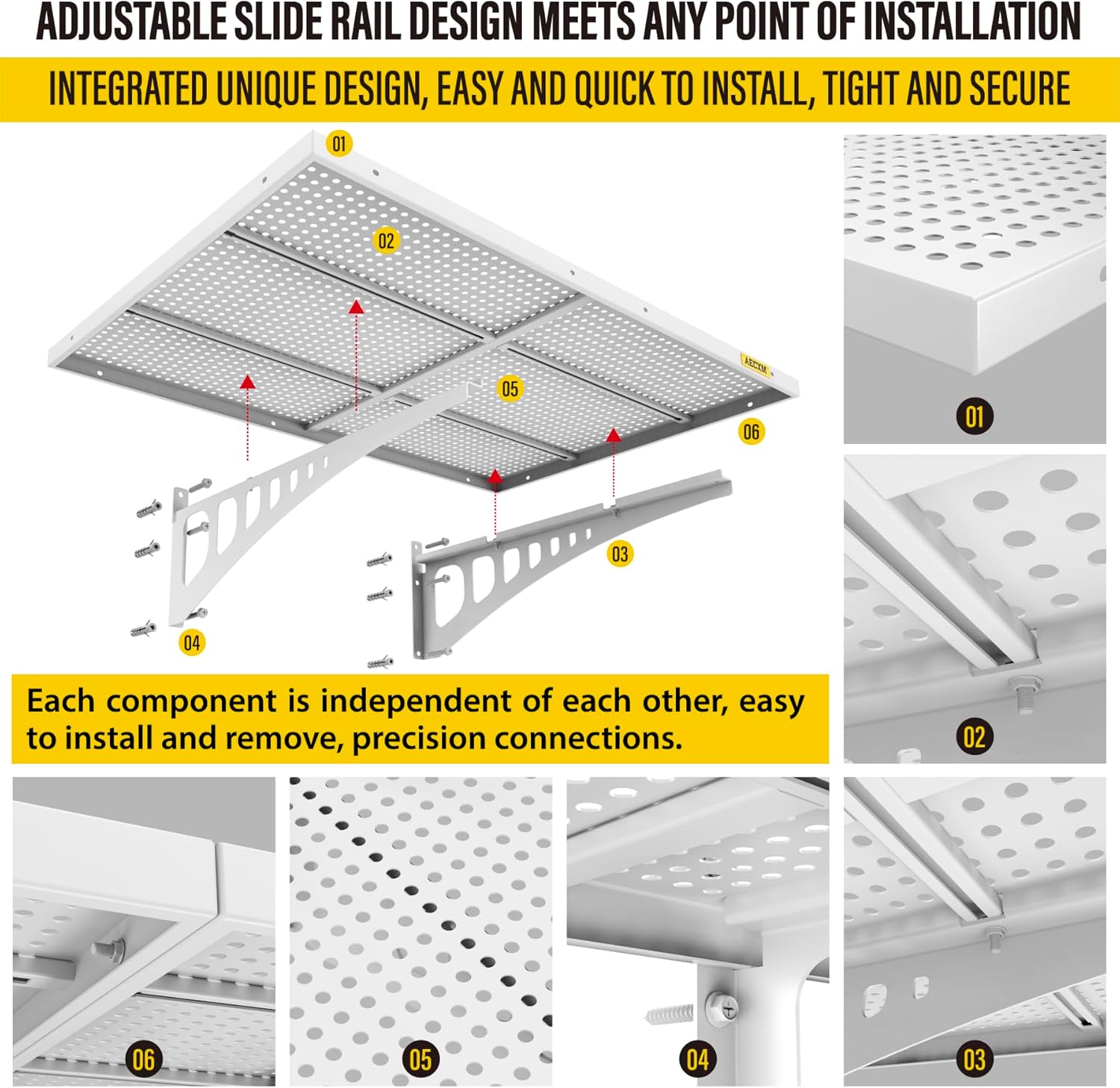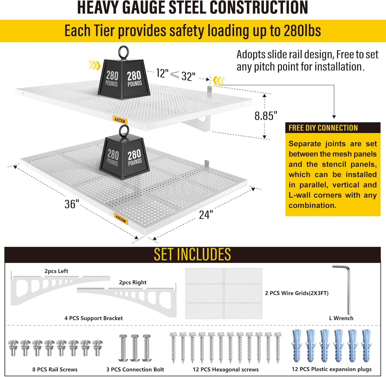 - Innovative Design: Unlike fixed wood stud spacing systems, Aecxm garage wall shelving feature an exclusive sliding rail screw design, allowing flexible installation on any wood stud spacing within the panel's length. Adjust freely and hassle-free