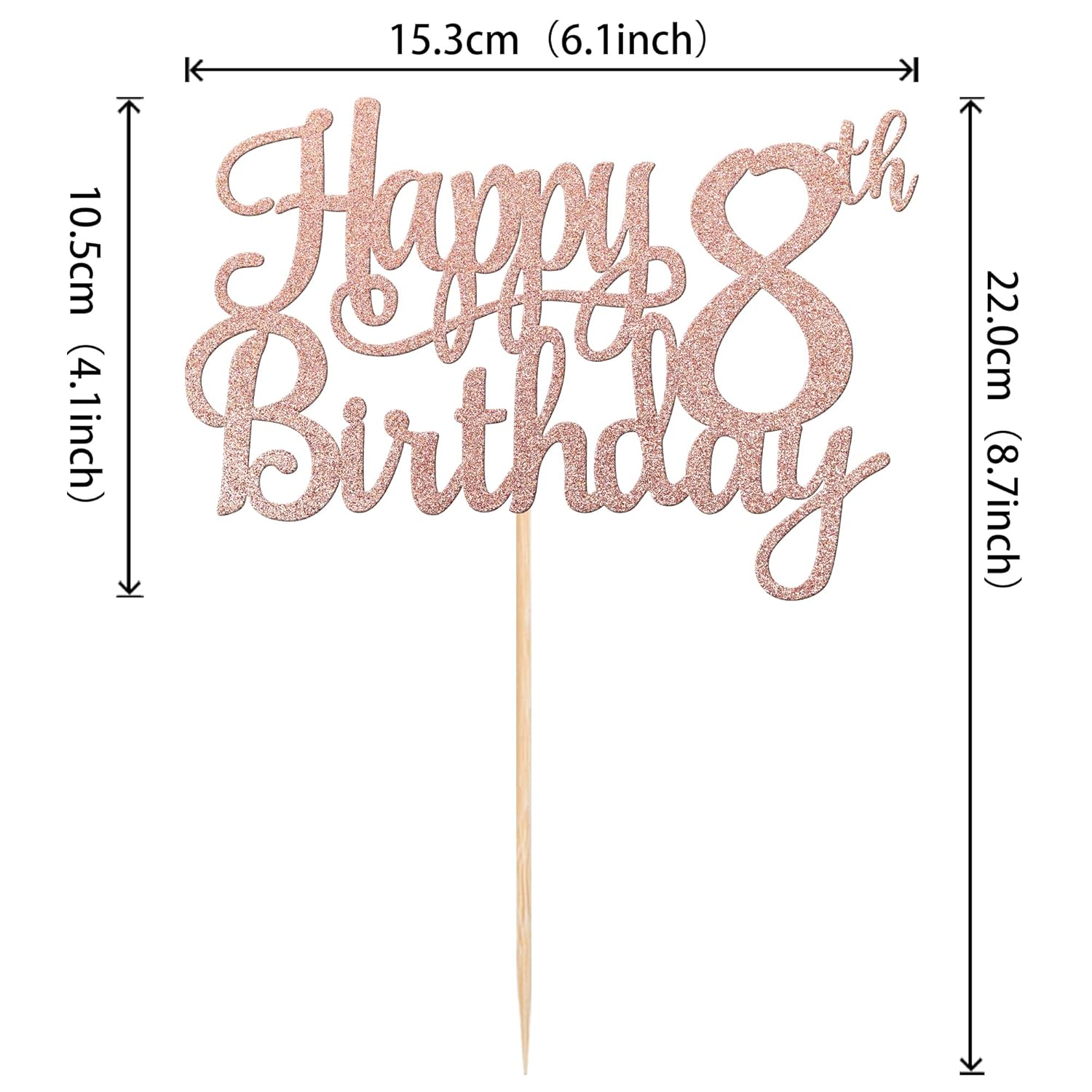 - Wide Usages ! The cake topper is perfect for happy 8th birthday theme party, cheers to 8 years birthday theme party cake decorations, they can make your cake more attractive and bring the fun to your party.You can also apply them for ice cream, fruits, cookies and other desserts.