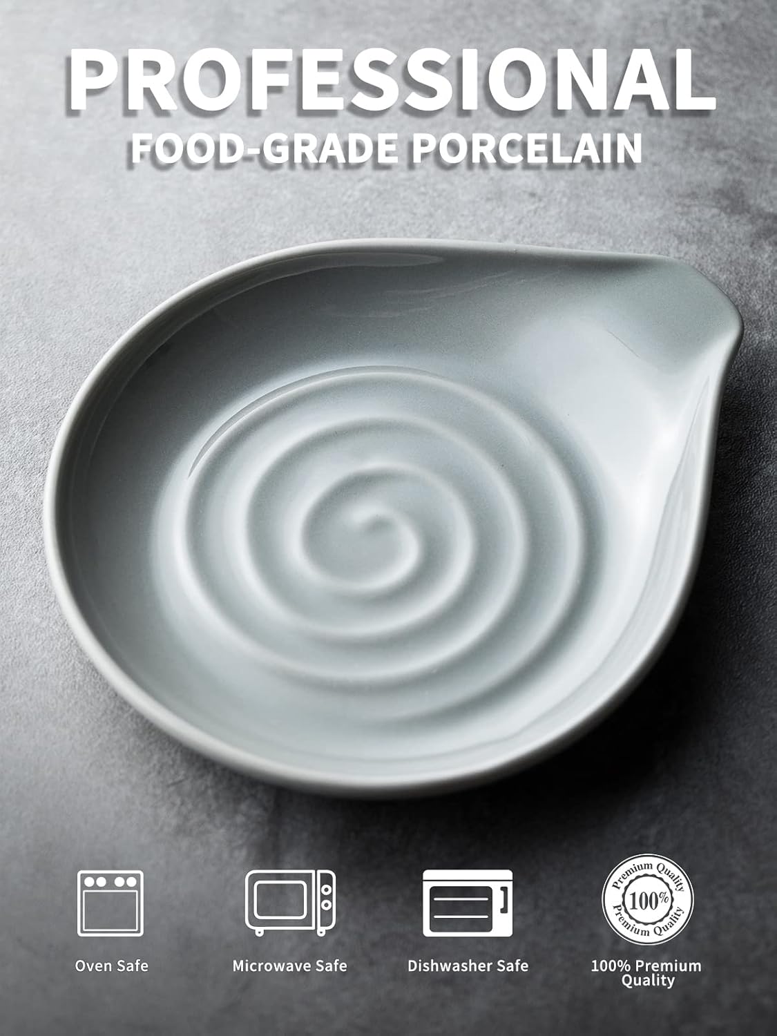 - Chic Design: This spoon rest with a swirl motif, looks very cute. The grooves of the swirl will “grab” any utensils you place on the rest,keeps cooking utensils in place and hold grease without overflowing. Never worry about a staining your countertop again