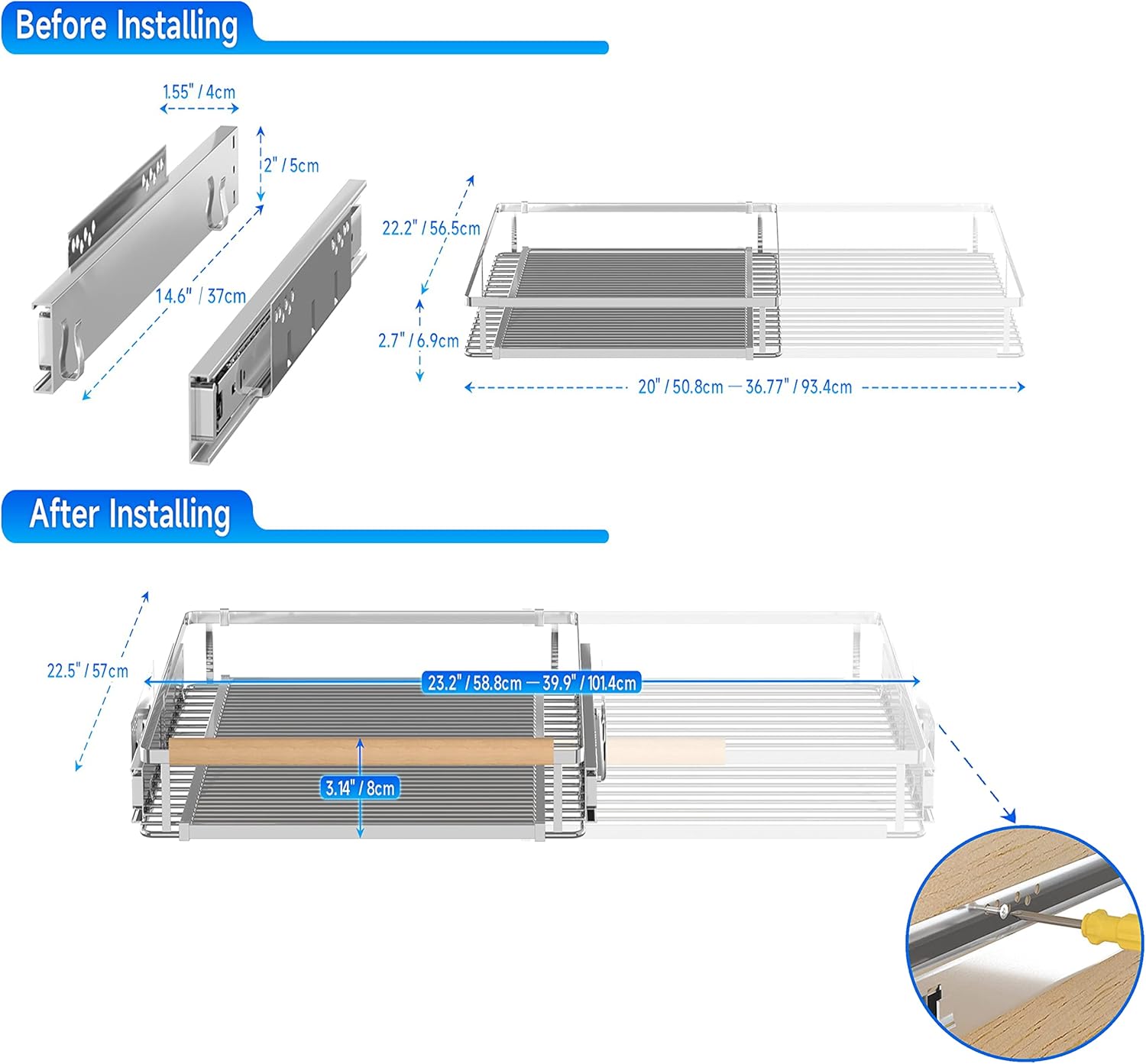 - ✔【High Quality Material】The pull out drawers for kitchen cabinets is made of stainless steel, which can directly contact tableware and food, and is very safe, waterproof and rust proof; Stainless steel metal pull out drawers for kitchen cabinets is more durable and more supportive than ABS plastic basket; Simple and low-key colors can match with cabinets of various styles, suitable for a variety of family styles