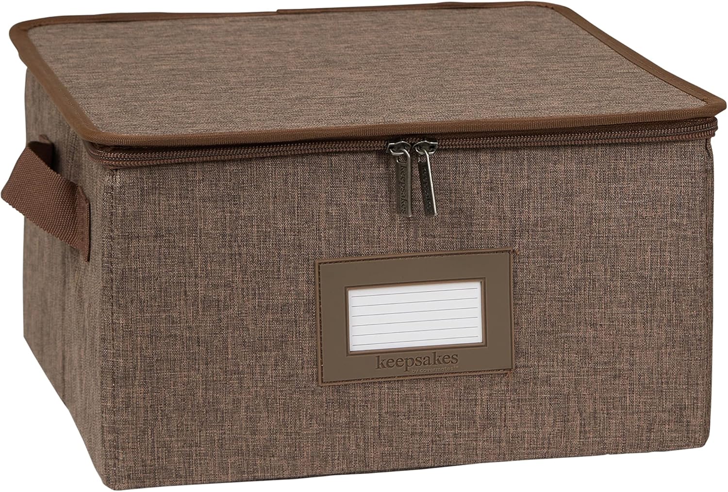 Covermates Keepsakes Dish Storage Box - Stackable, Reinforced Handles, China Storage, Brown Heather