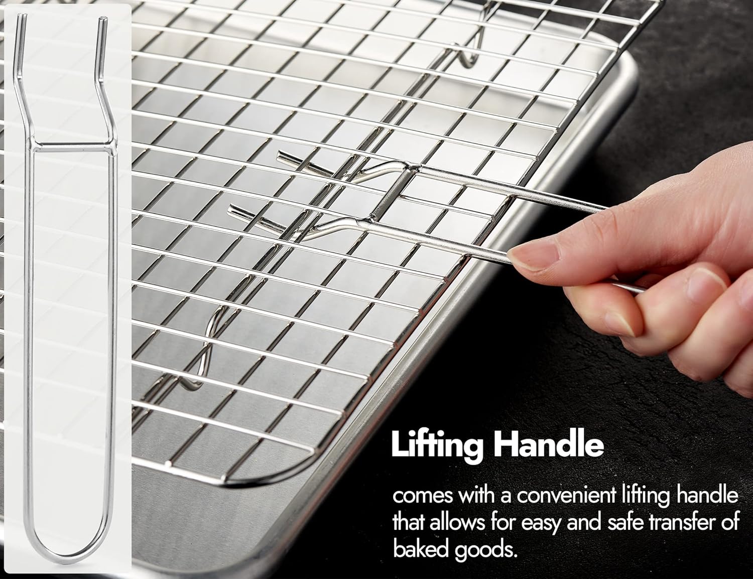 CURTA 2 Pack Chef Cooling Rack,NSF Listed 18/8 Stainless Steel Oven Safe Grid Wire Cookie Cooling Racks for Baking & Cooking - 16.8" X 24.4" Commercial Grade comes with Lifting Handle …