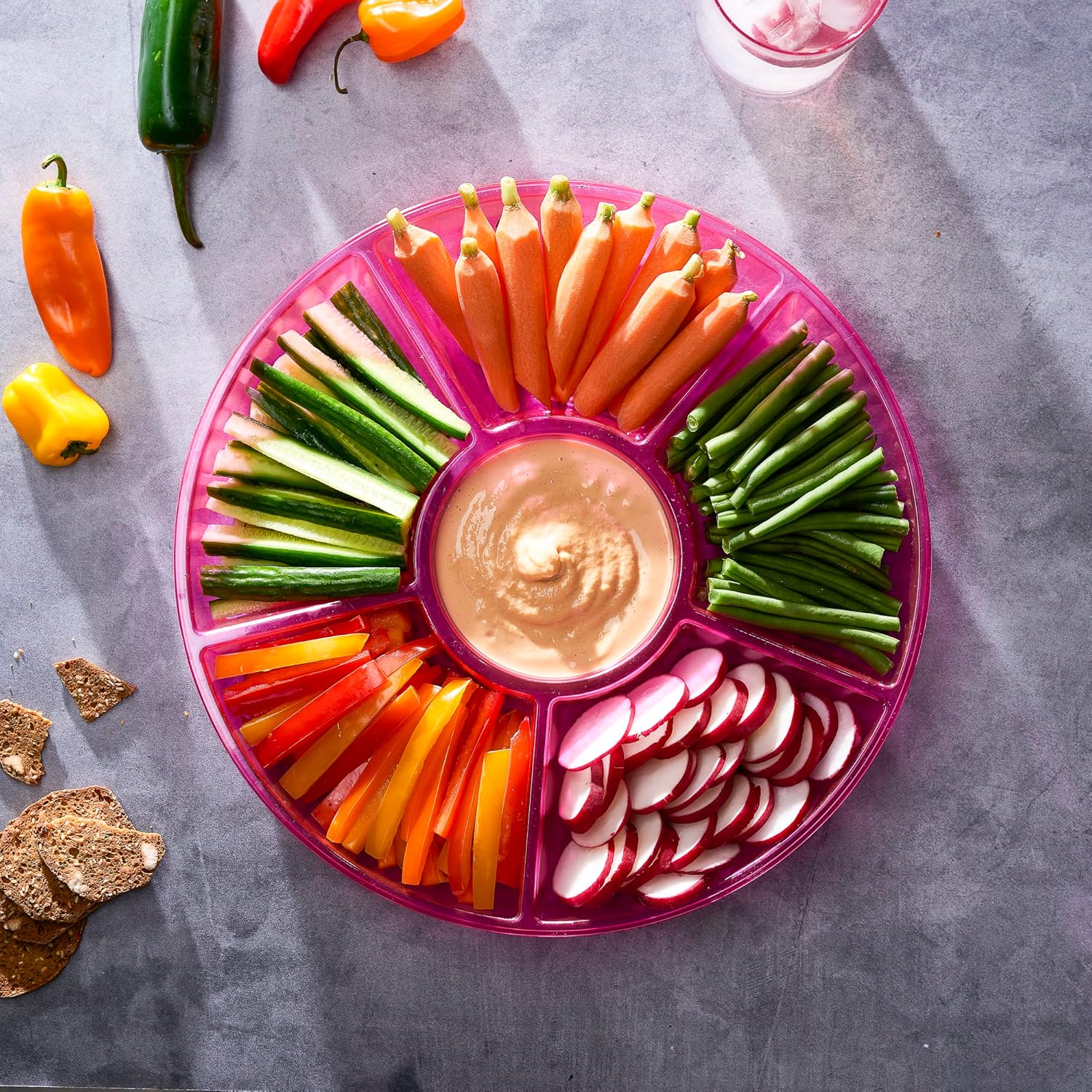 - USE: Plasticpro 6 Sectional Part Platter is Great for Use for Cut up Veggies, Nut Platter, Candy Platter, Veggy's & Sauce in the Center Weddings, Family gatherings, Holidays, Birthday Party's & for Every Event