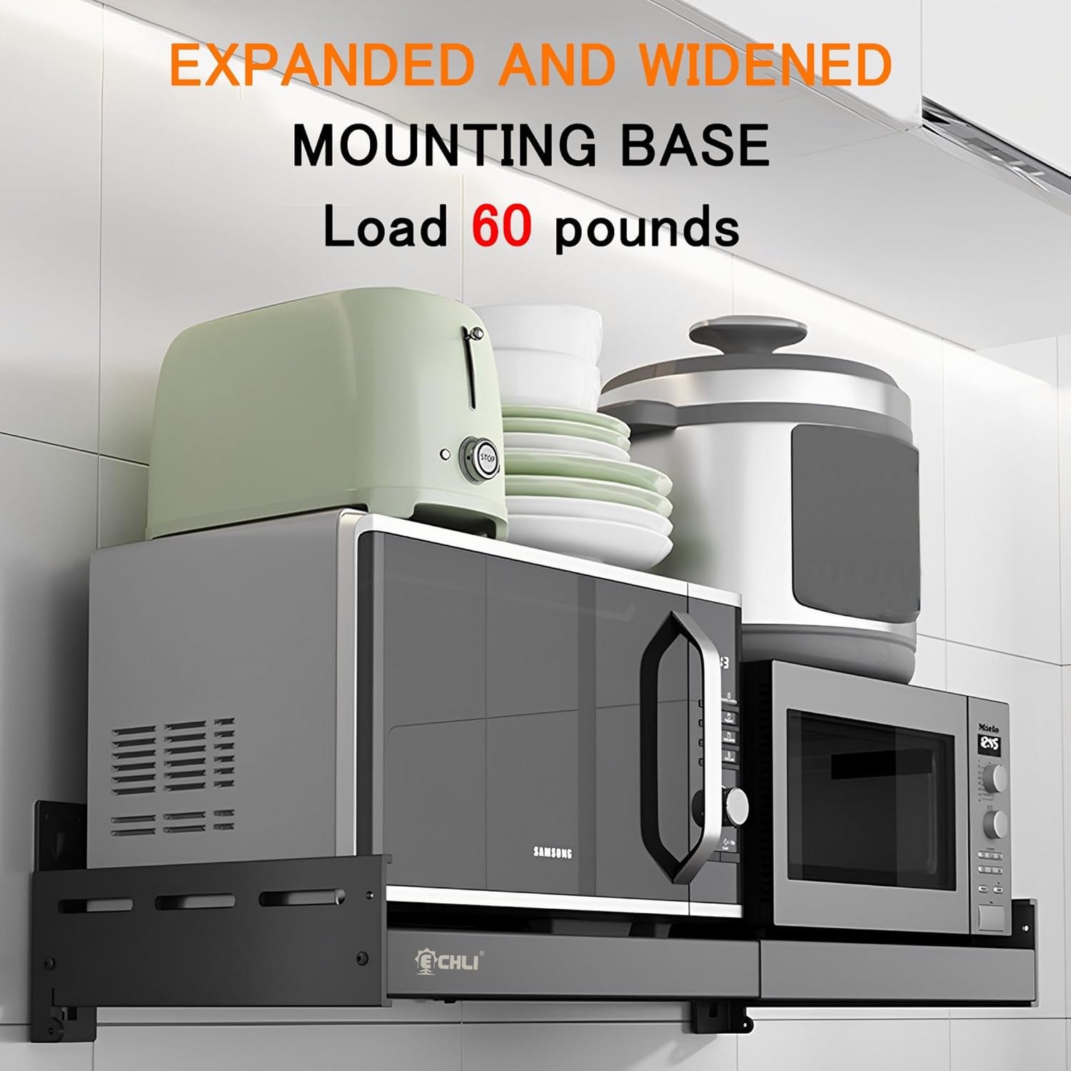 - High Quality Materials --- Our wall Microwave holders are made of high quality stainless steel and are strong and wear resistant. The square pipe doubles its bearing capacity by increasing the area under stress, and the thick material provides strong support. Extended mounting base for extended contact area, maximum load 60 lb.
